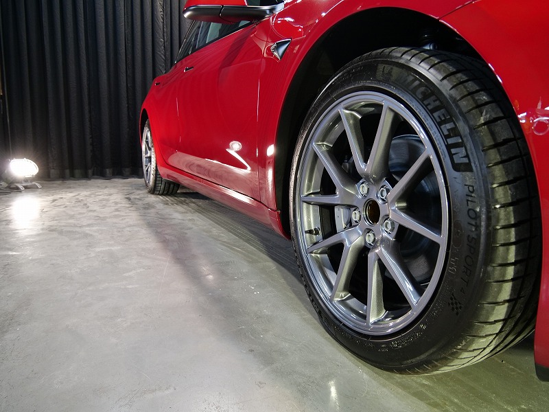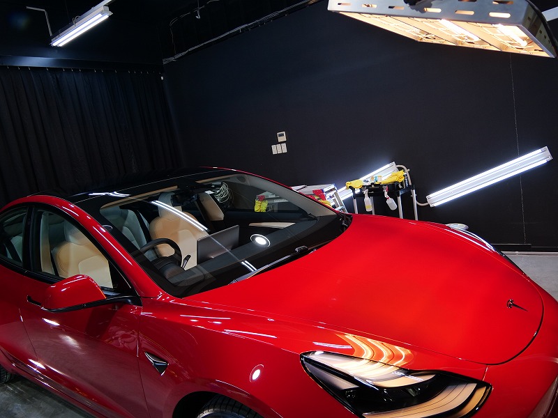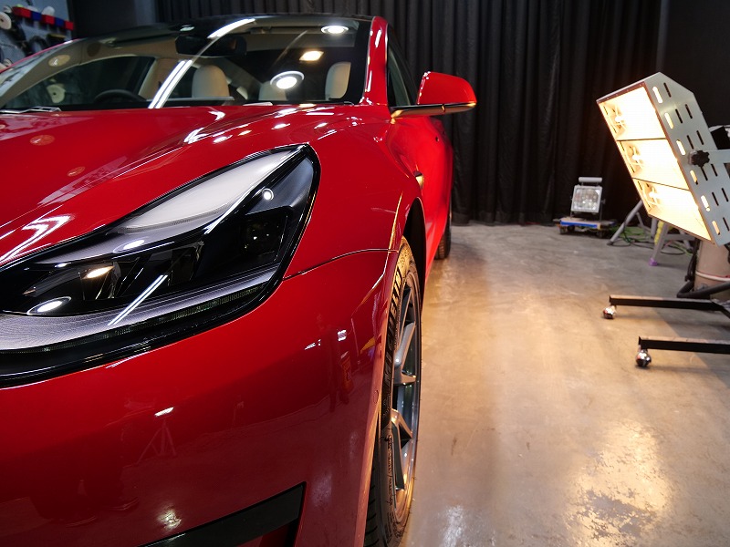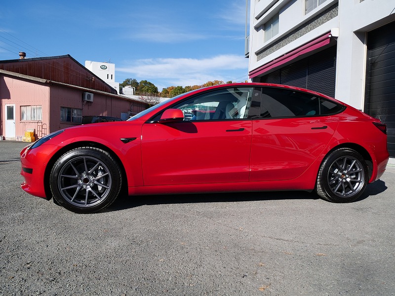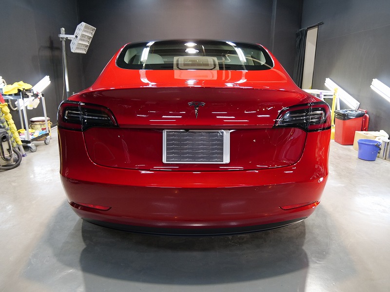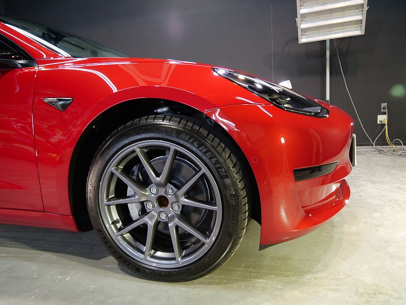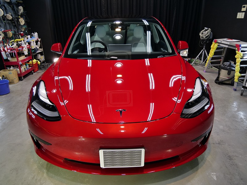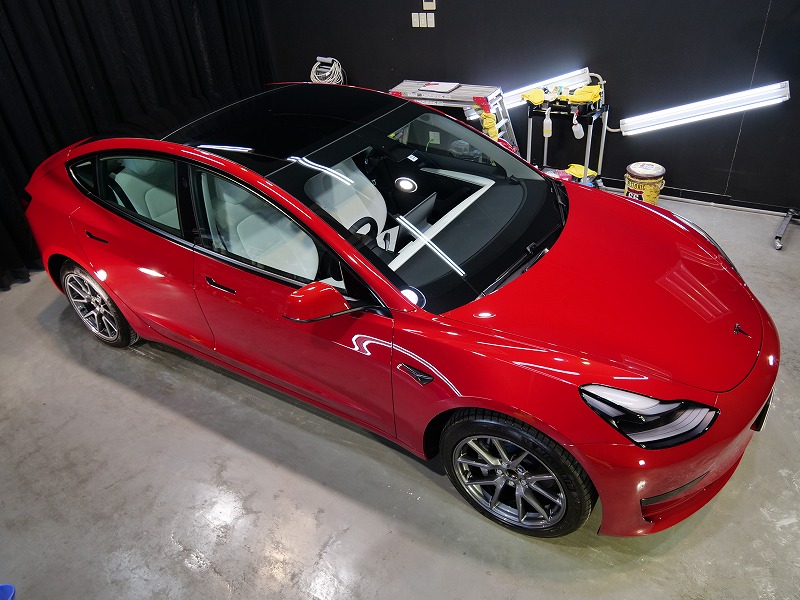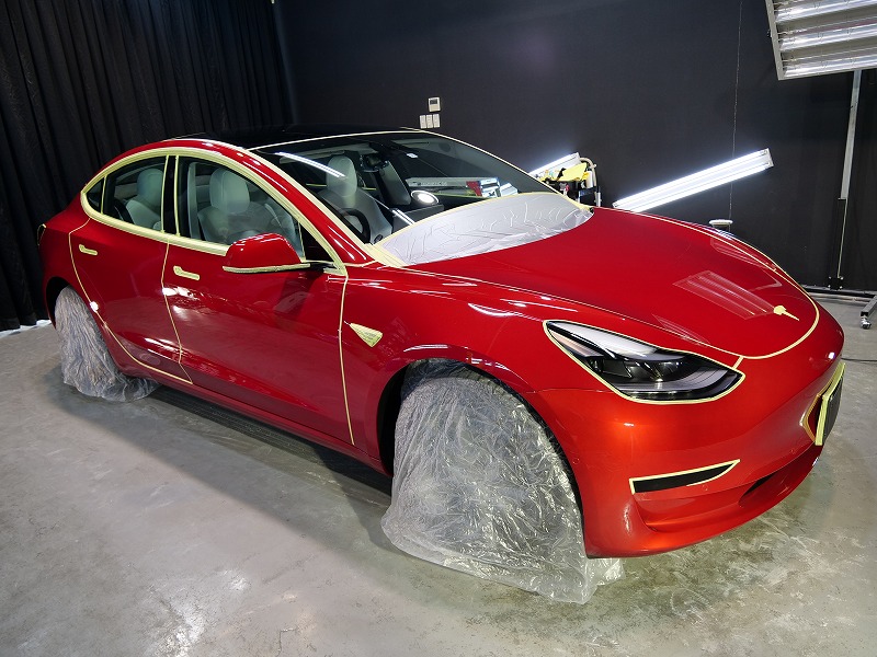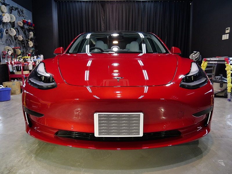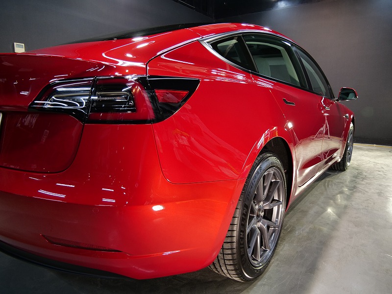 大阪府箕面市より人気のテスラ モデル3のご入庫です!ボディカラーはレッドマルチコート!施工はボディ
