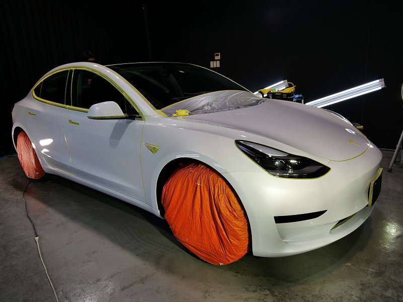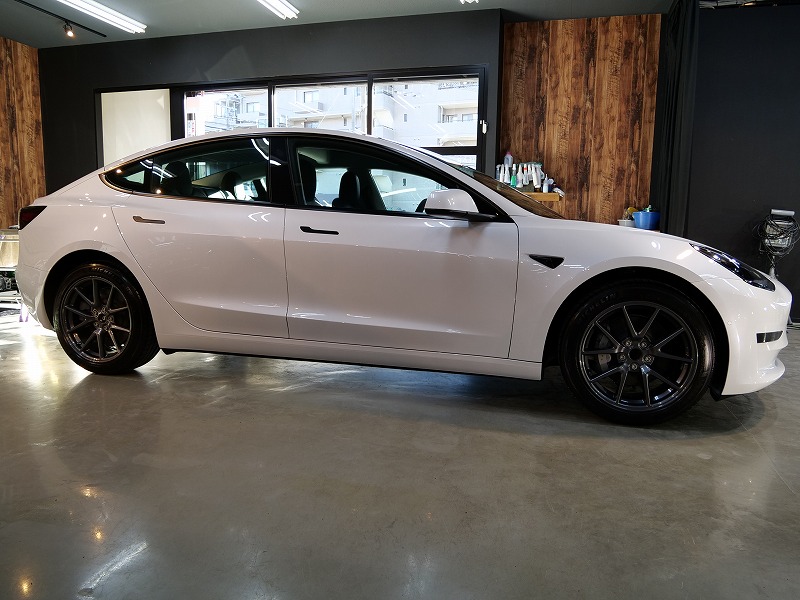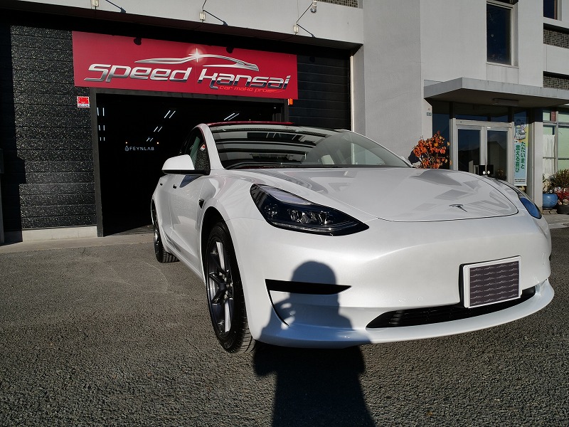 大阪市鶴見区より当店のお客様からのご紹介でテスラモデル3をお持ち下さいました!ボディカラーはパール