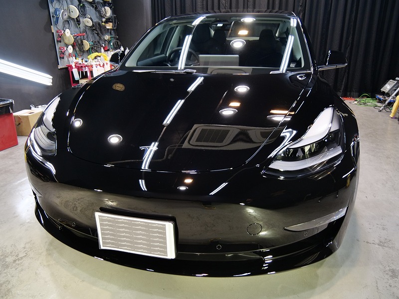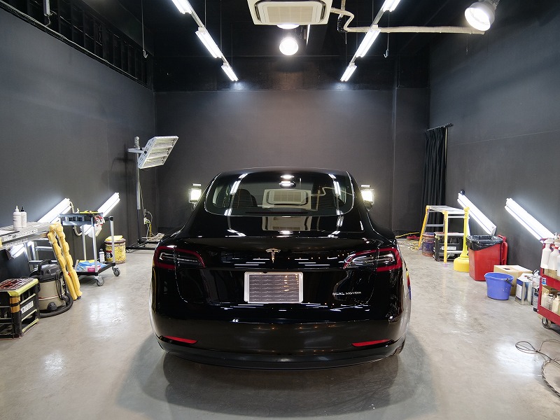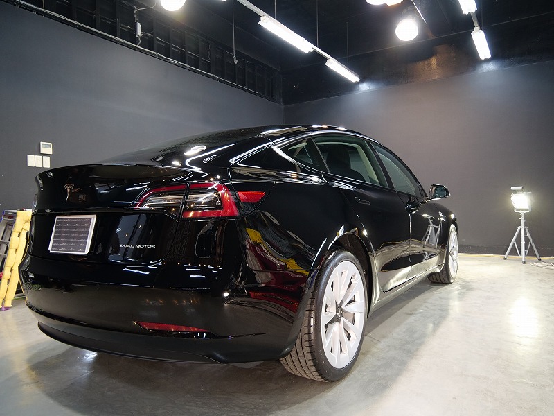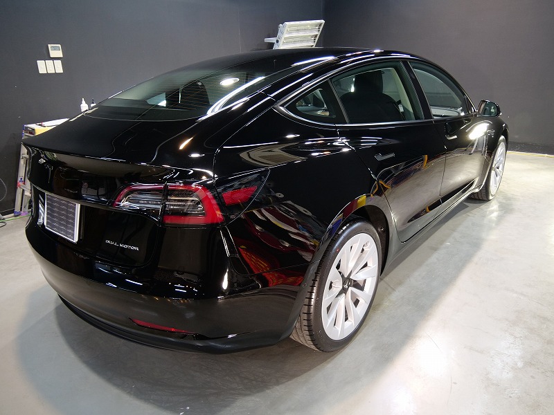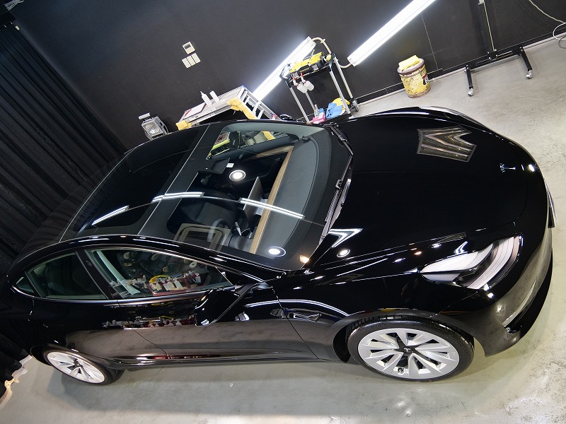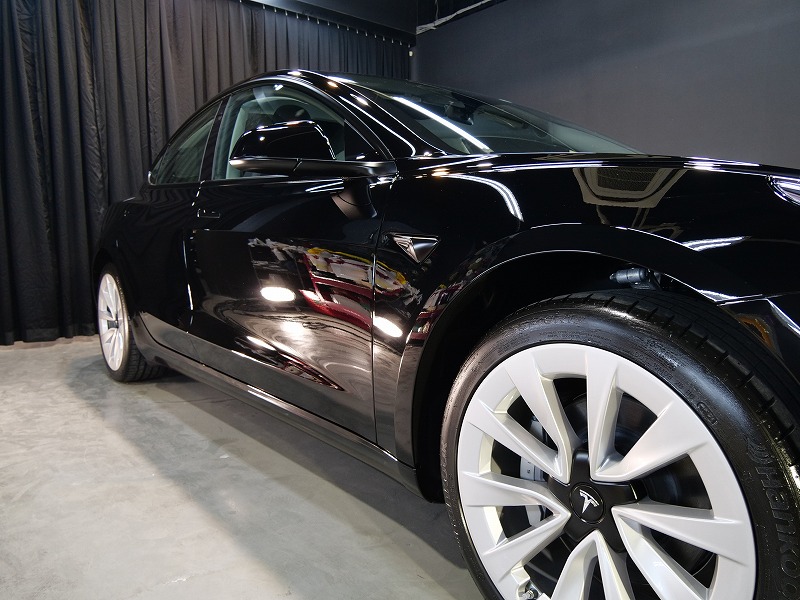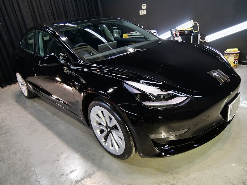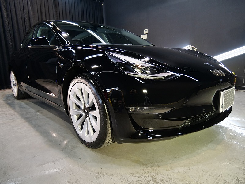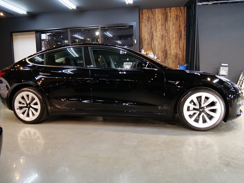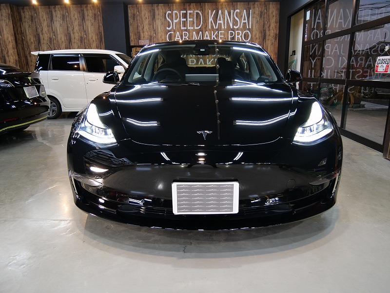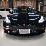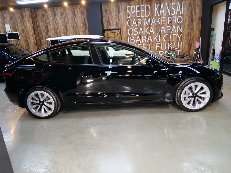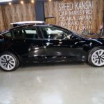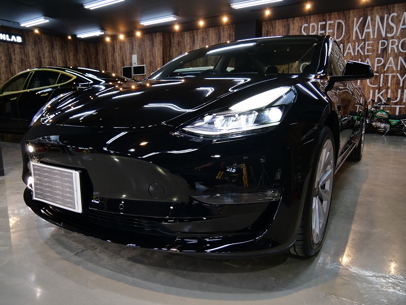 大阪府豊中市より人気のテスラモデル3のご入庫です!ボディカラーはソリッドブラック!施工はボディには