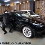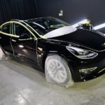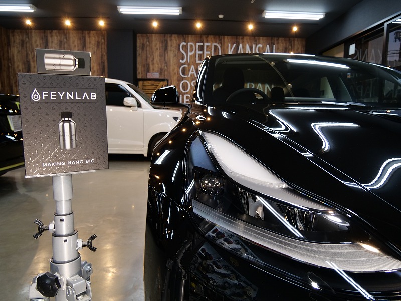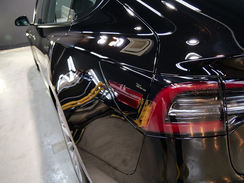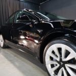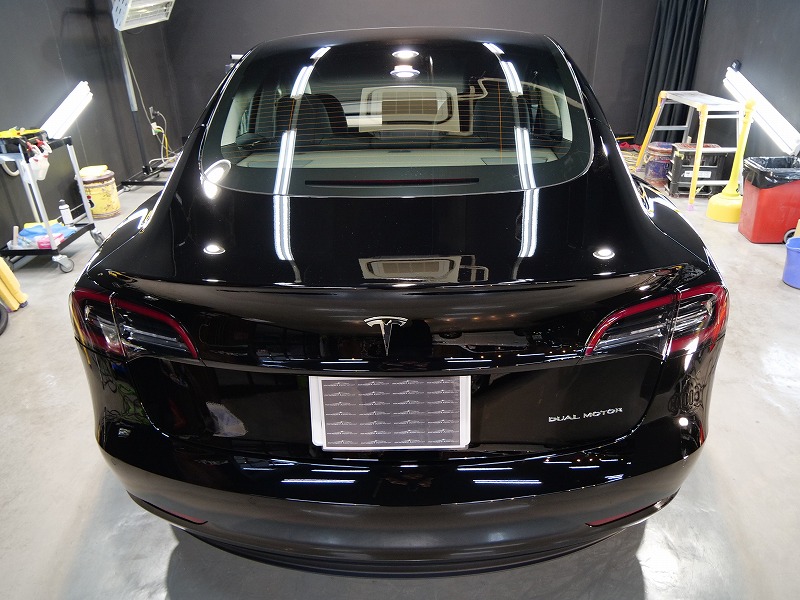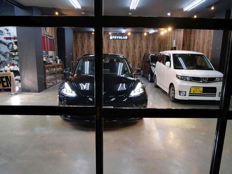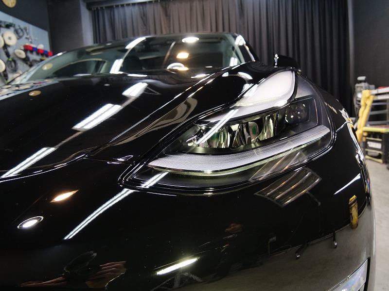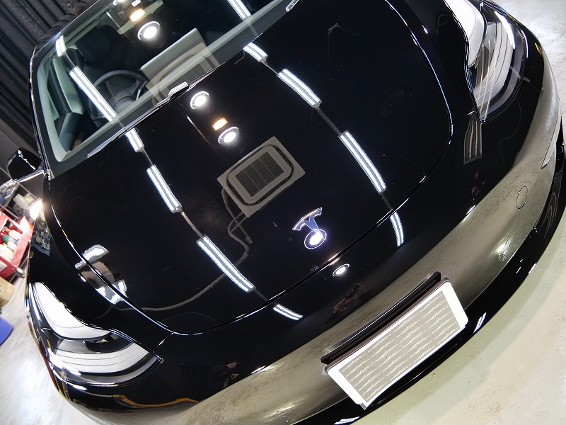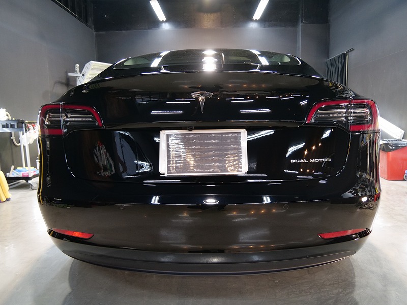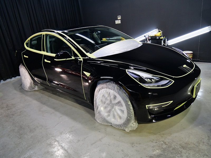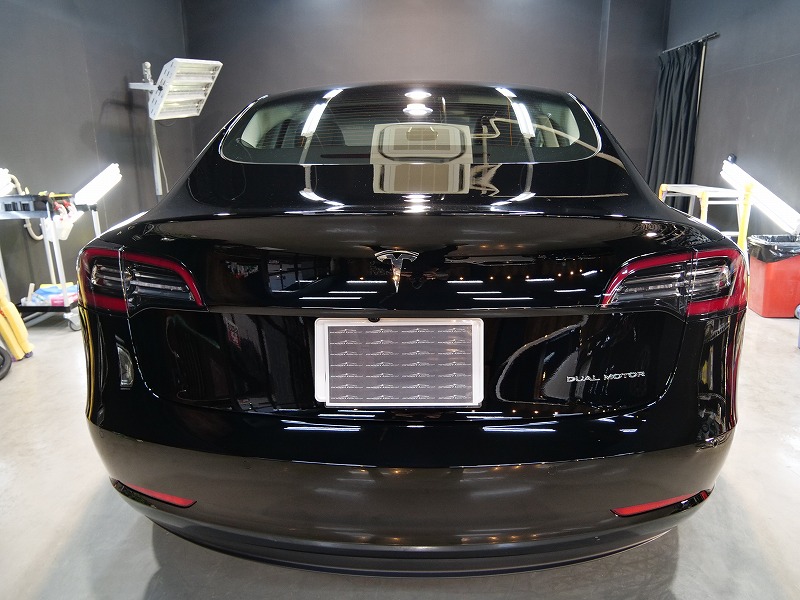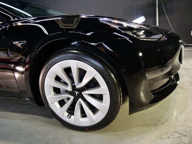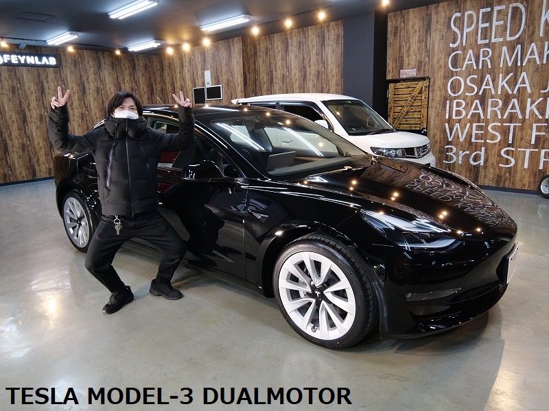 大阪府豊中市より人気のテスラモデル3のご入庫です!ボディカラーはソリッドブラック!施工はボディには