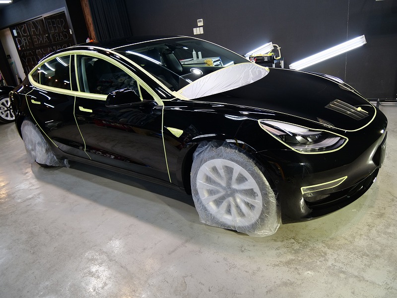 大阪府岸和田市より当店のリピーター様がテスラモデル3をお持ち下さいました!ボディカラーはソリッド
