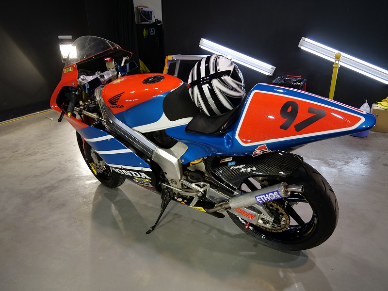 大阪府茨木市より当店のリピーター様がホンダバイクNSR250R/MC21をお持ち下さいました!施工はボディ