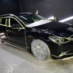 施工はボディには完全無機質のクォーツ(親水性)/ホイールコーティング/フロントガラス撥水、二年耐久