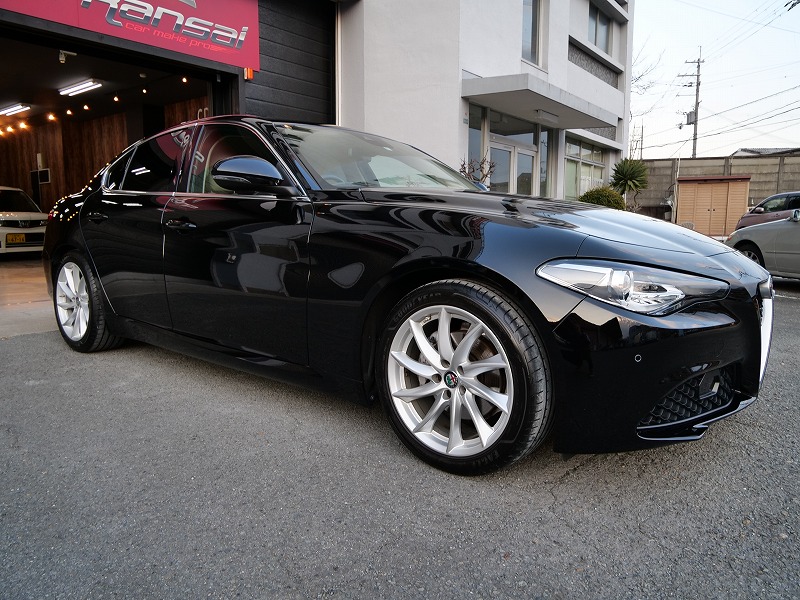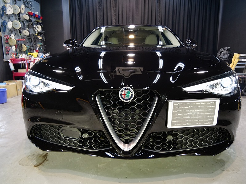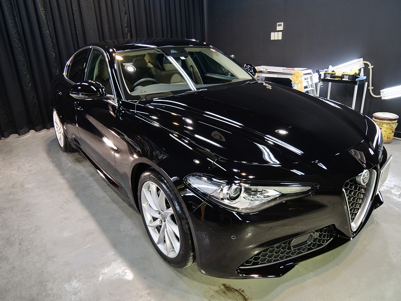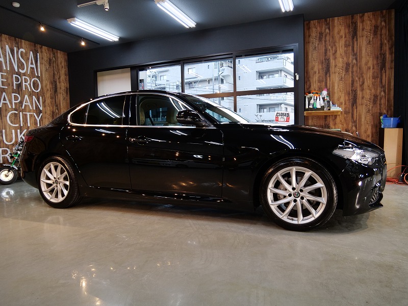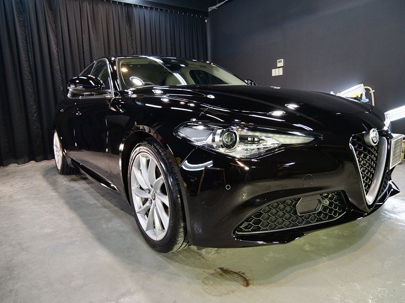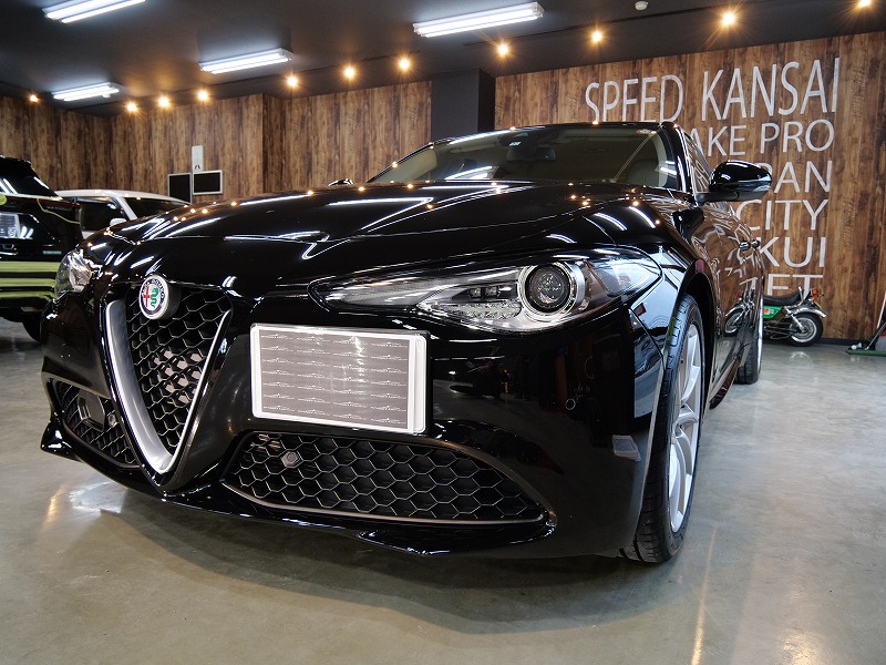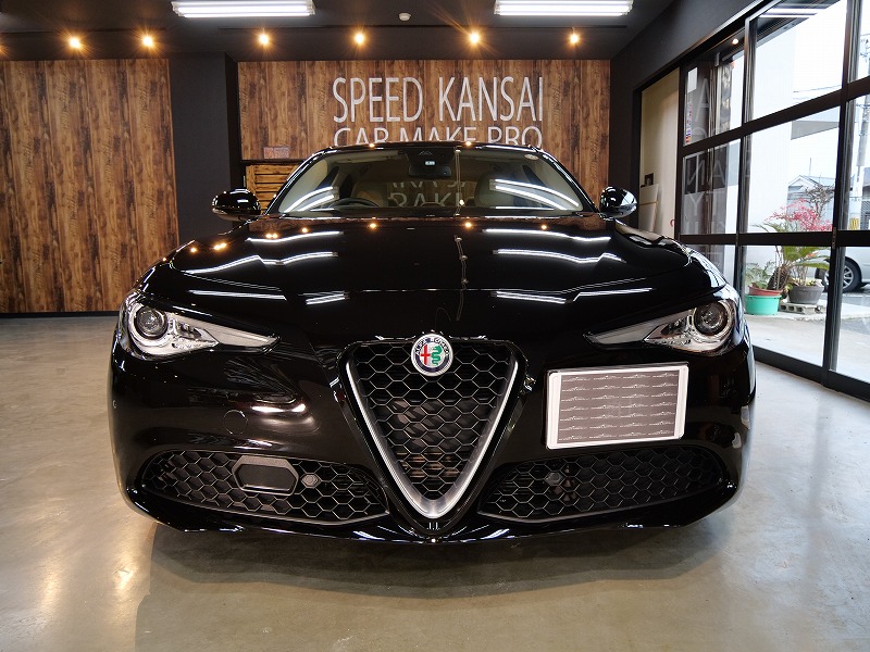 大阪府吹田市よりアルファロメオ ジュリアのご入庫です!ボディカラーはブラックソリッド!施工はボディ