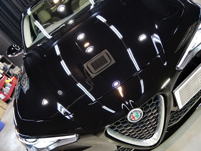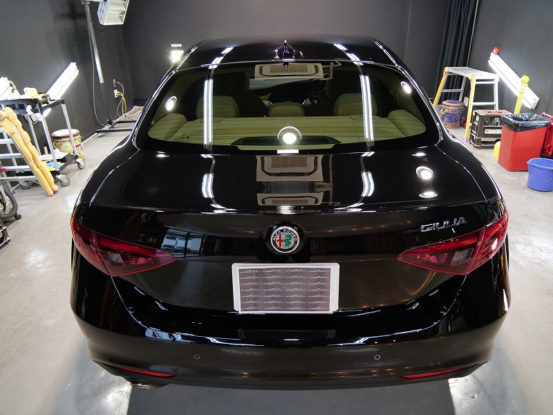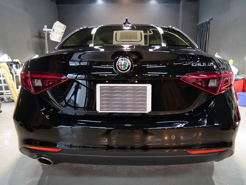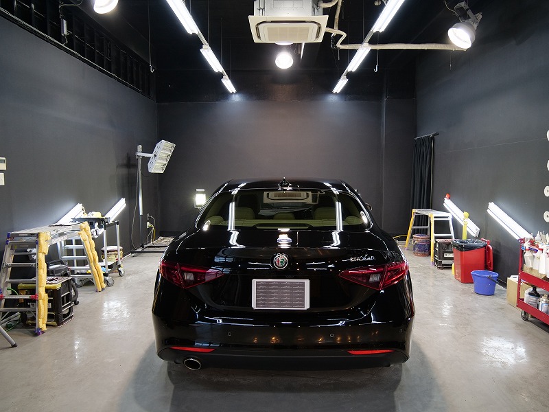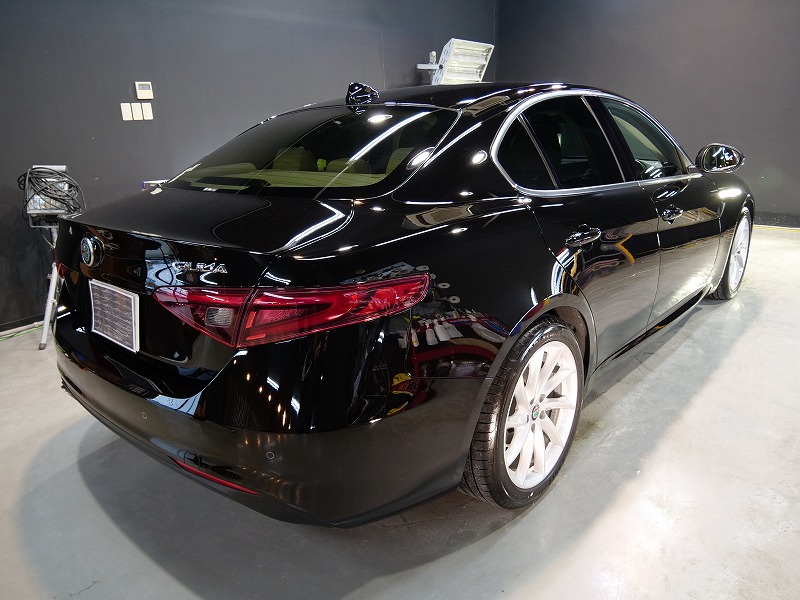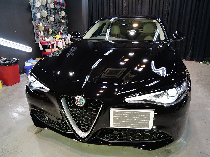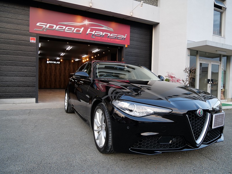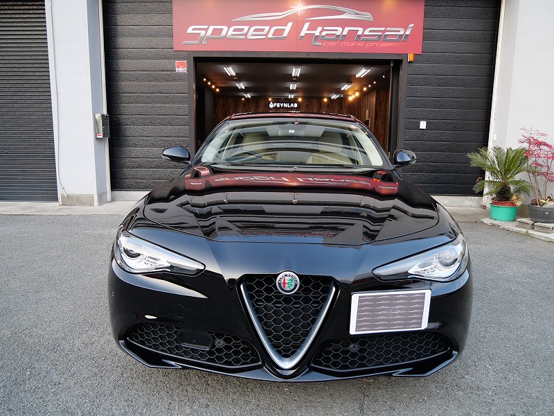 大阪府吹田市よりアルファロメオ ジュリアのご入庫です!ボディカラーはブラックソリッド!施工はボディ