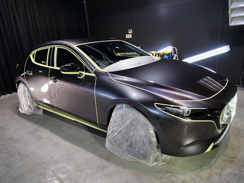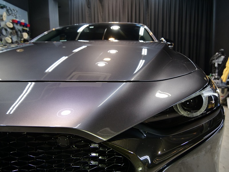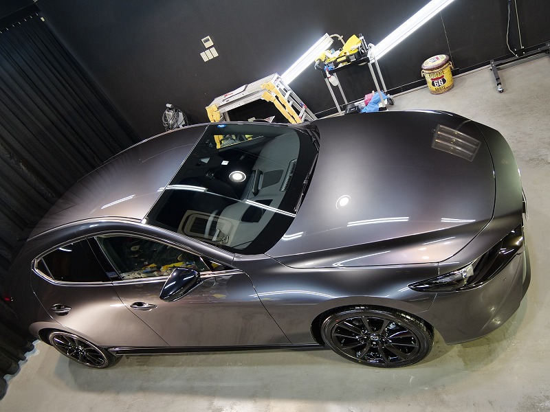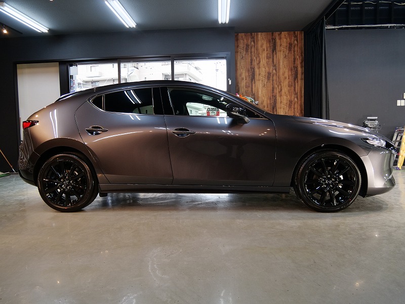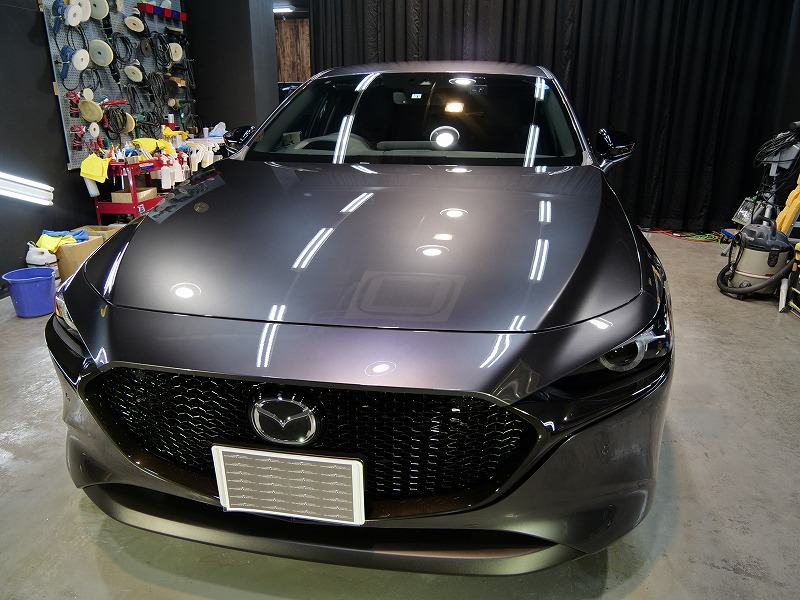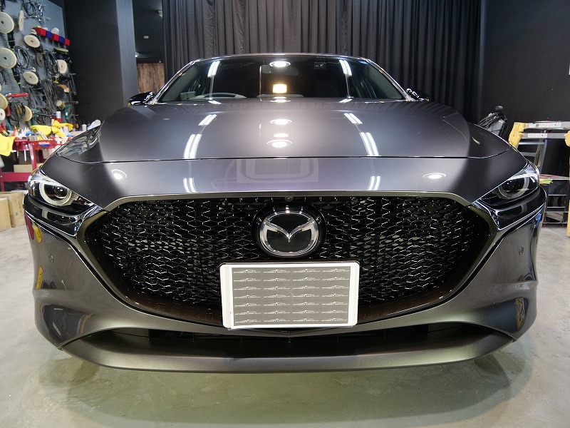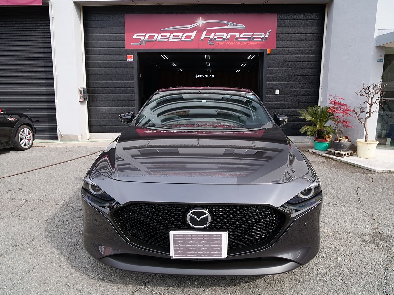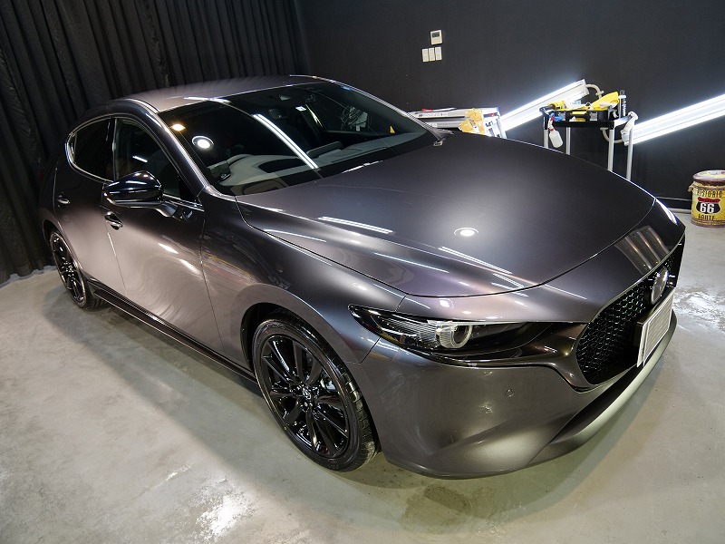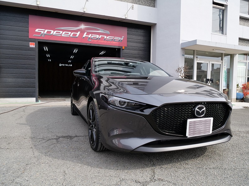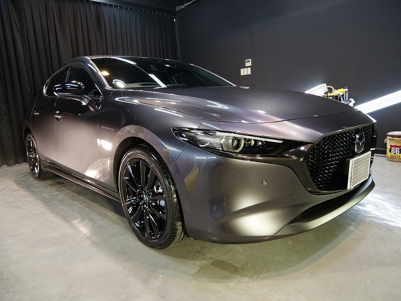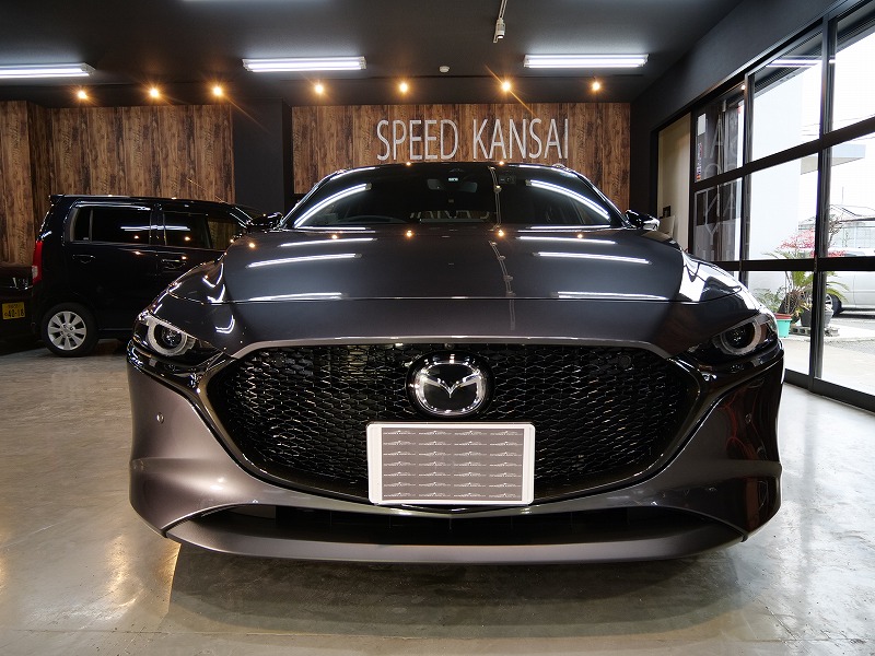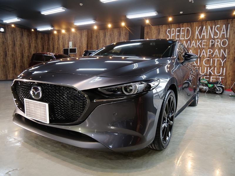 兵庫県宝塚市より新型マツダ3のご入庫です!ボディカラーはマシーングレープレミアムメタリック!施工は