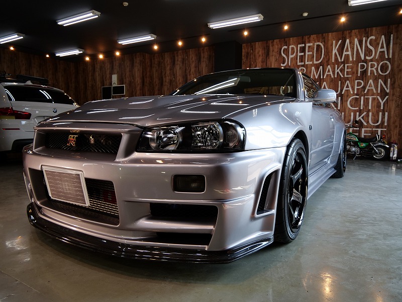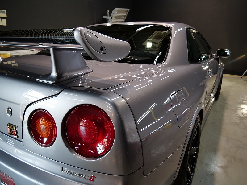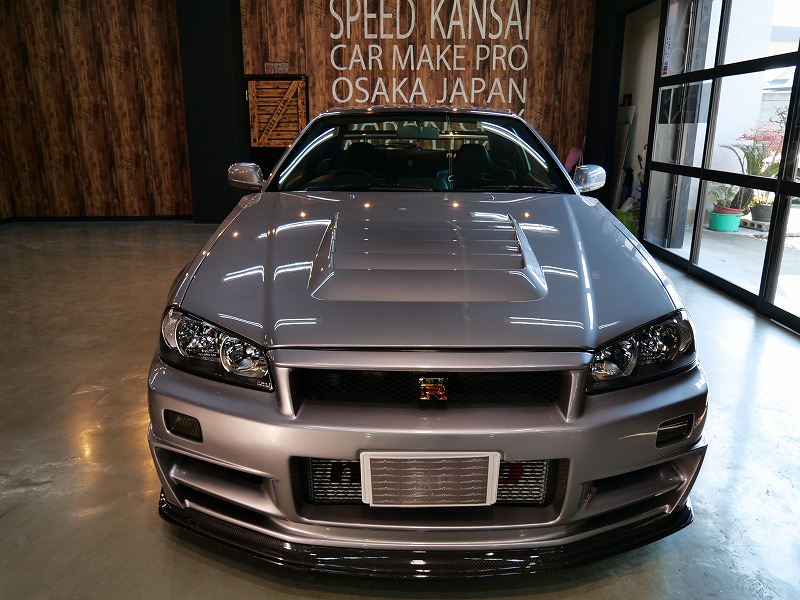 大阪府より当店のリピーター様が日産スカイラインGTR 34 VスペックⅡ をお持ち下さいました!ボディ