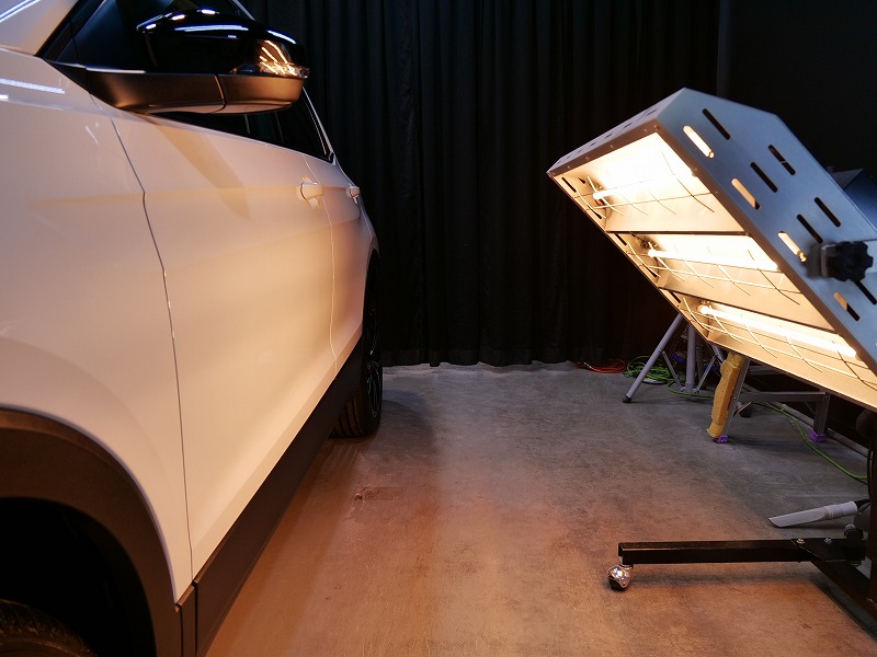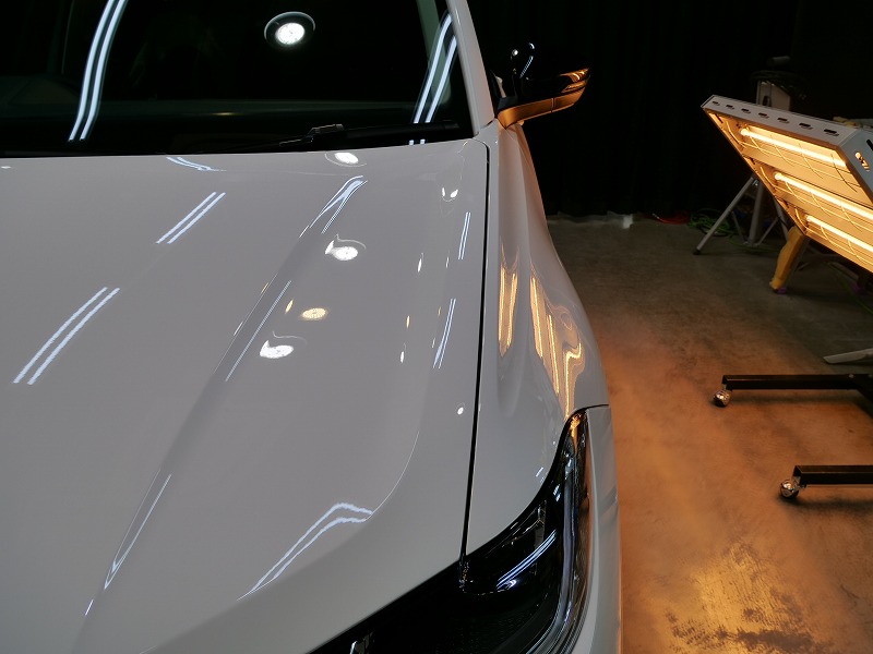 ピュアホワイト!施工はボディには完全無機質のクォーツ(親水性)/ホイールコーティング/未塗装樹脂