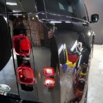 施工はボディには完全無機質のクォーツ(親水性)/ホイールコーティング/未塗装樹脂コーティング/フロント