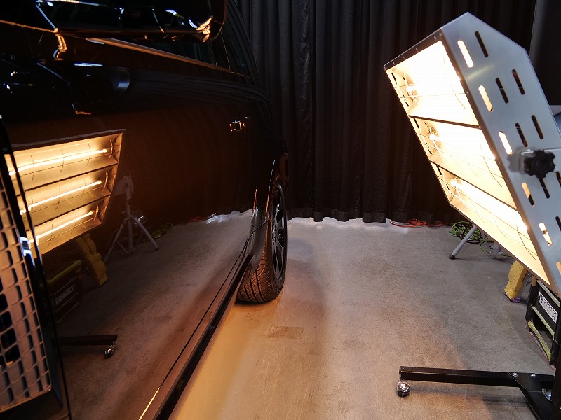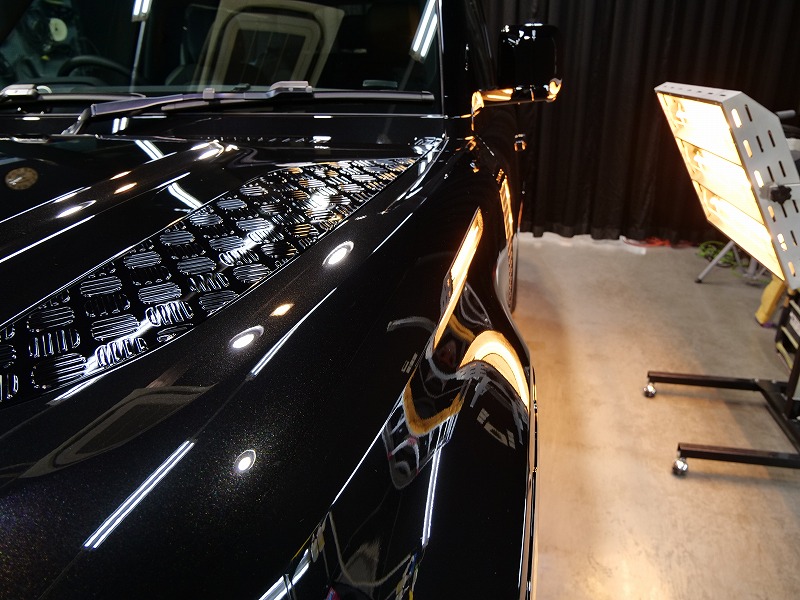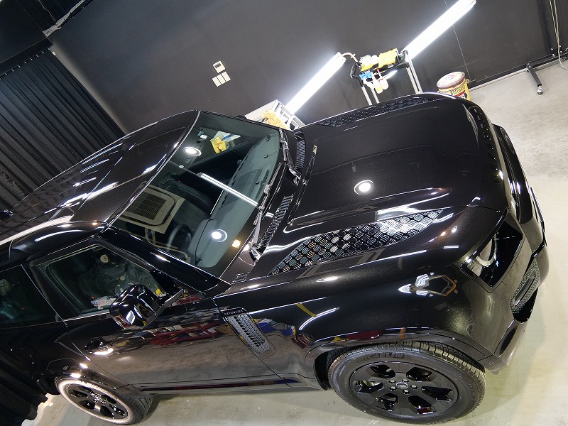 施工はボディには完全無機質のクォーツ(親水性)/ホイールコーティング/未塗装樹脂コーティング/フロント