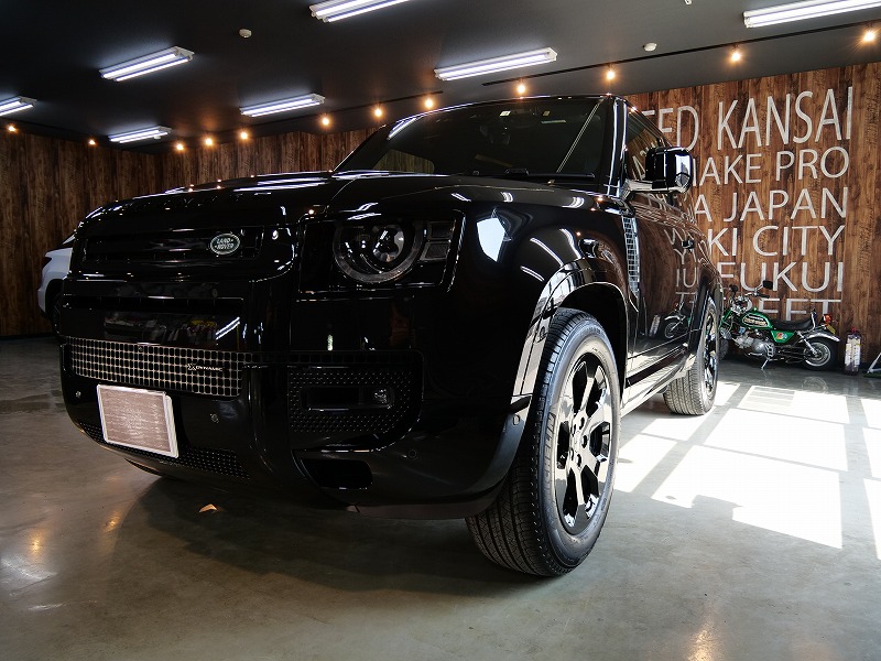 大阪府高槻市よりランドローバー ディフェンダー90のご入庫です!ボディカラーはサントリーニブラックM!
