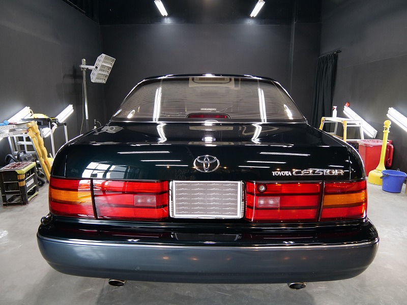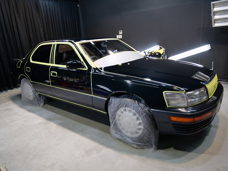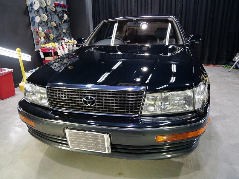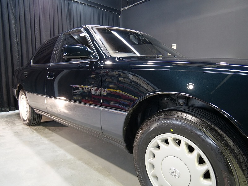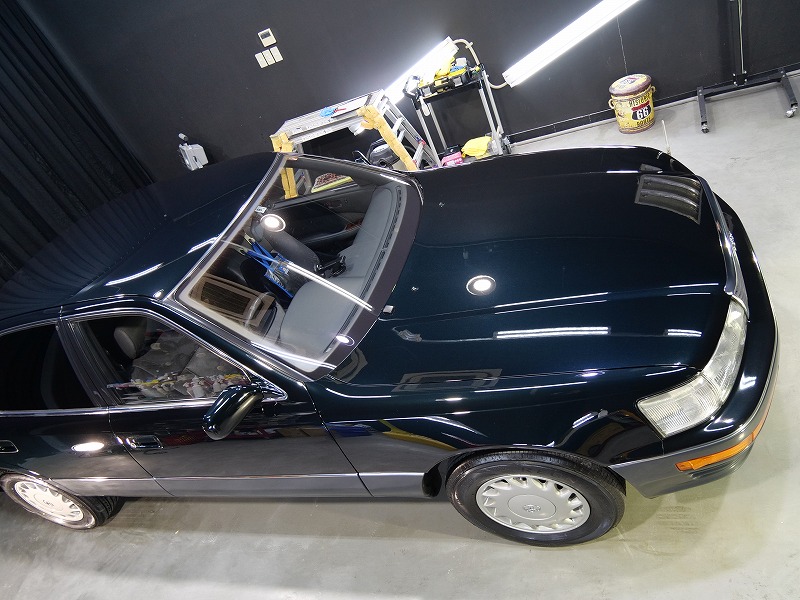 大阪市東住吉区よりトヨタセルシオのご入庫です!ボディカラーはダークグリーン!施工はボディにはファイン