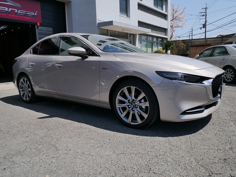 大阪府高槻市よりマツダ3セダン のご入庫です!ボディカラーはプラチナクォーツメタリック!施工は