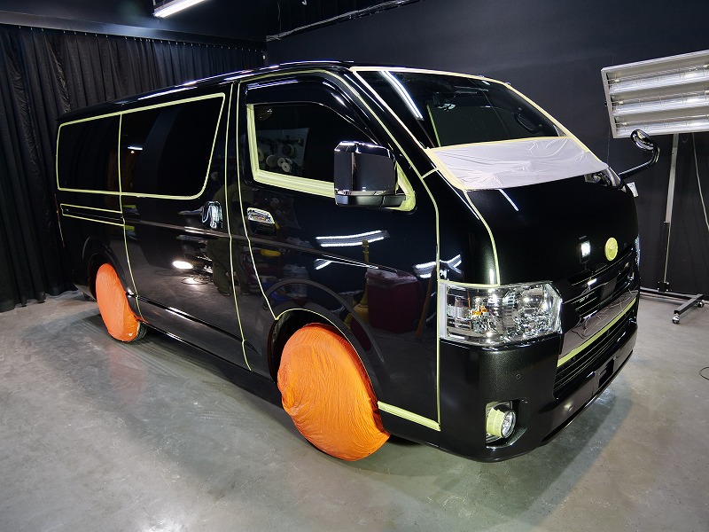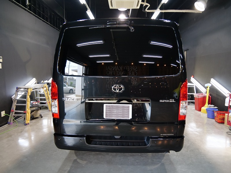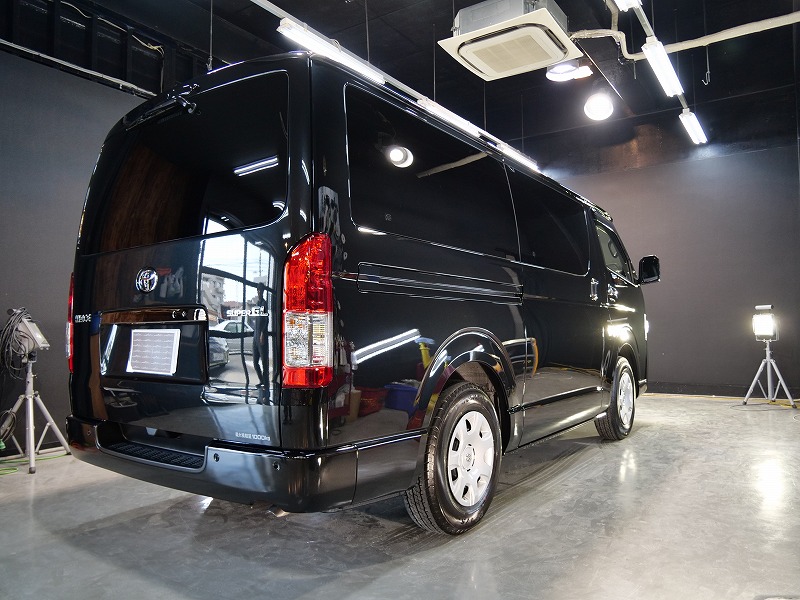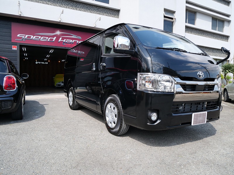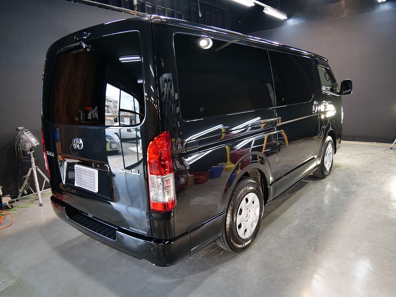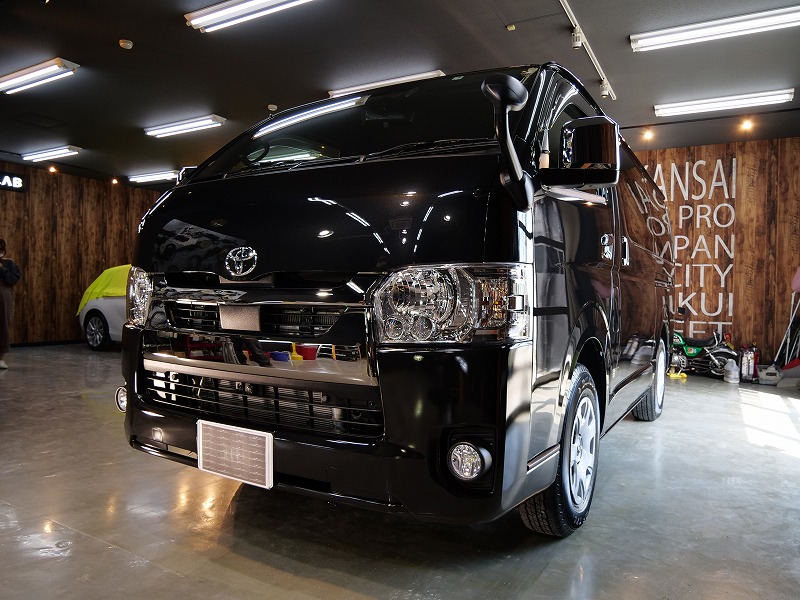 大阪市東淀川区よりトヨタ ハイエース スーパーGLのご入庫です!ボディカラーはブラックマイカ!施工は