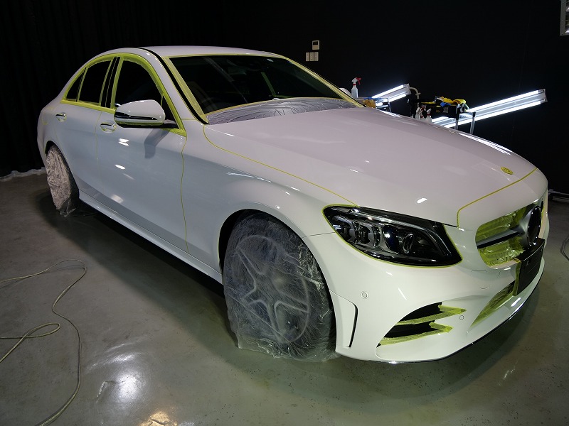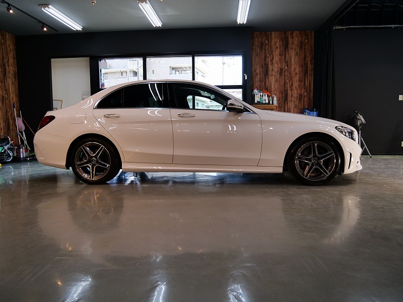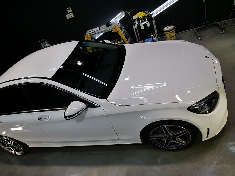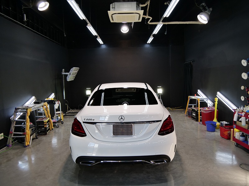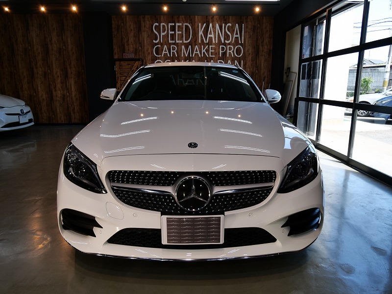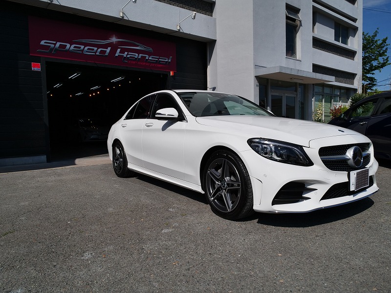 大阪府吹田市よりメルセデスベンツCクラスのご入庫です!ボディカラーはポーラホワイト!施工はボディには