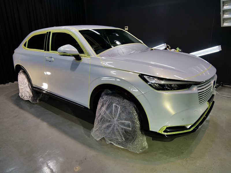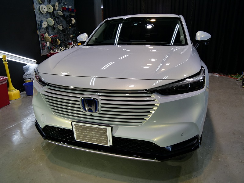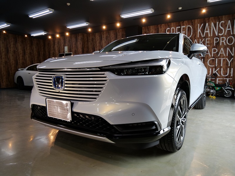 大阪市浪速区よりホンダヴェゼルのご入庫です!ボディカラーはプレミアムサンライトホワイトパール!施工は