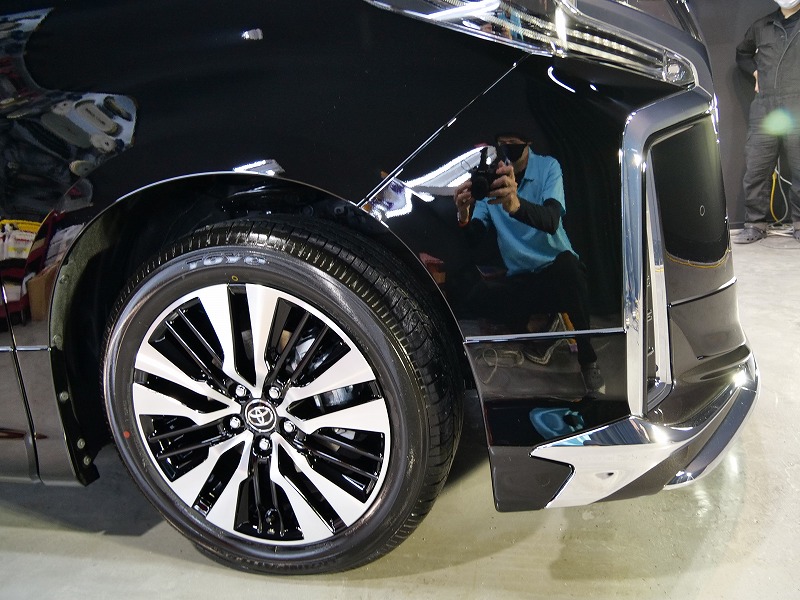 ブラック202!施工はボディには完全無機質のクォーツ/ホイールコーティング/フロントガラス撥水二年耐久
