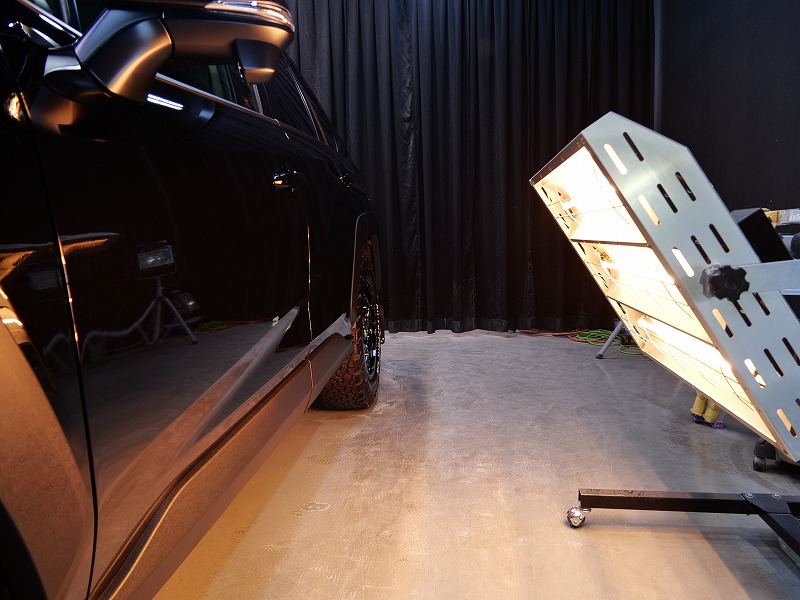 ブラックマイカ!施工はボディには完全無機質のクォーツ/ホイールコーティング/フロントガラス撥水二年