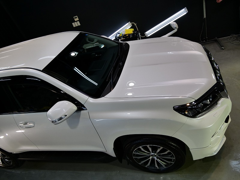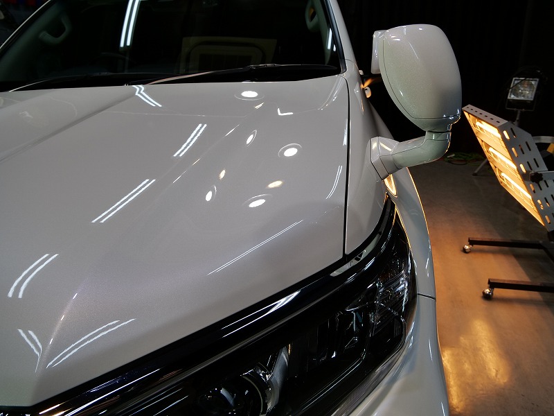 はホワイトパールクリスタルシャイン!施工はボディにはファインラボセラミックコーティング二層/ホイール