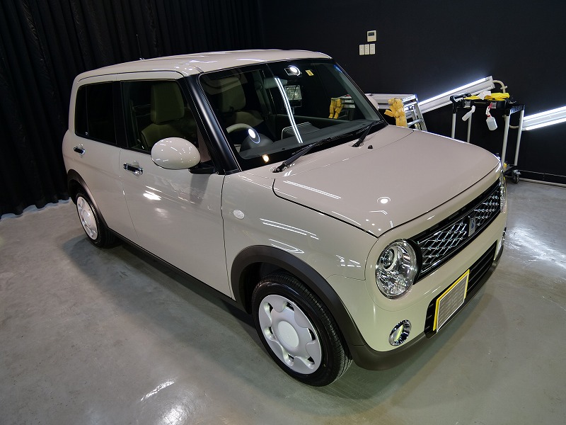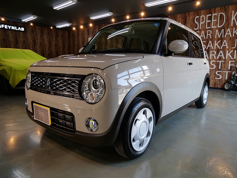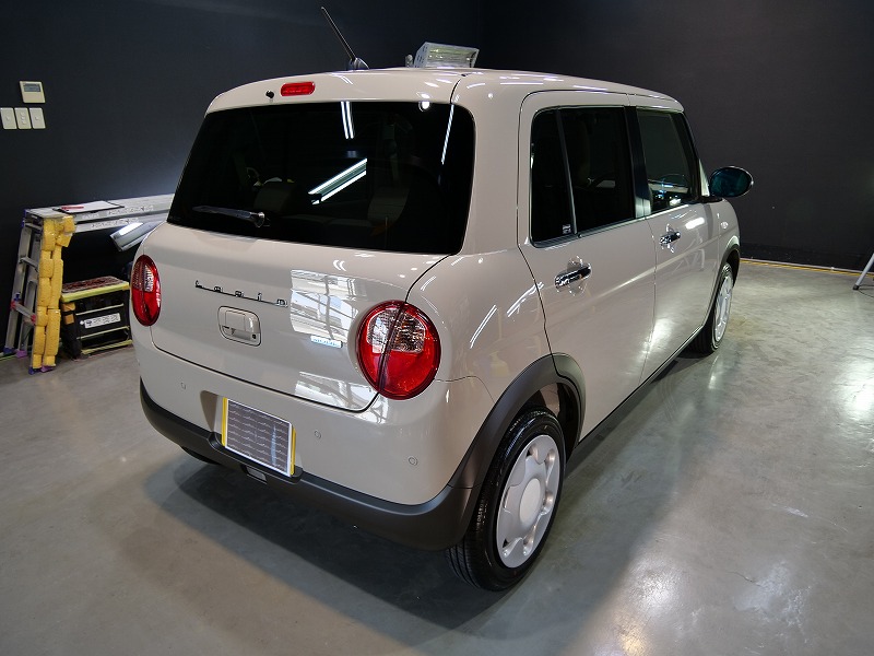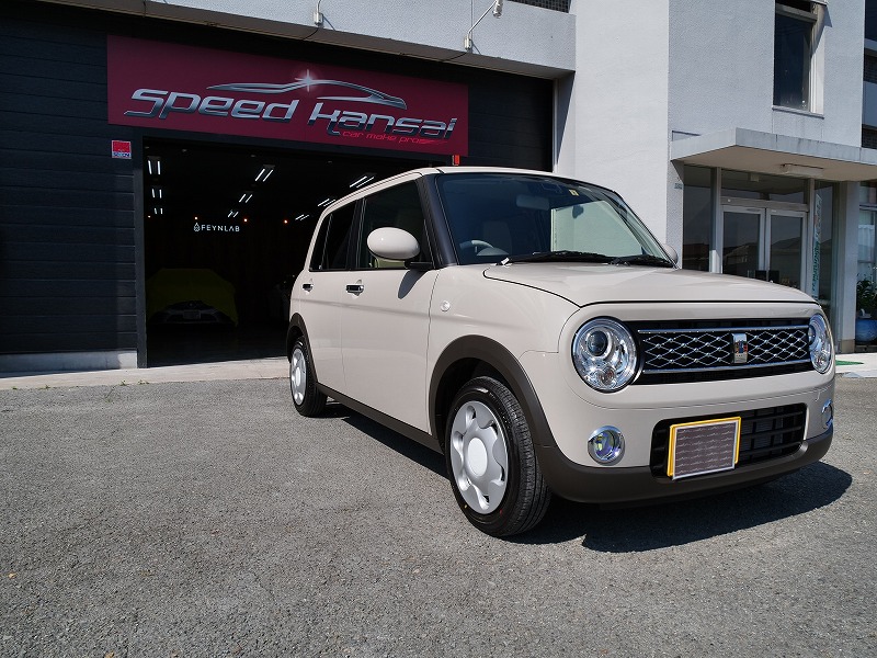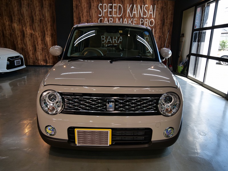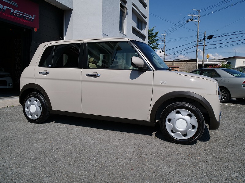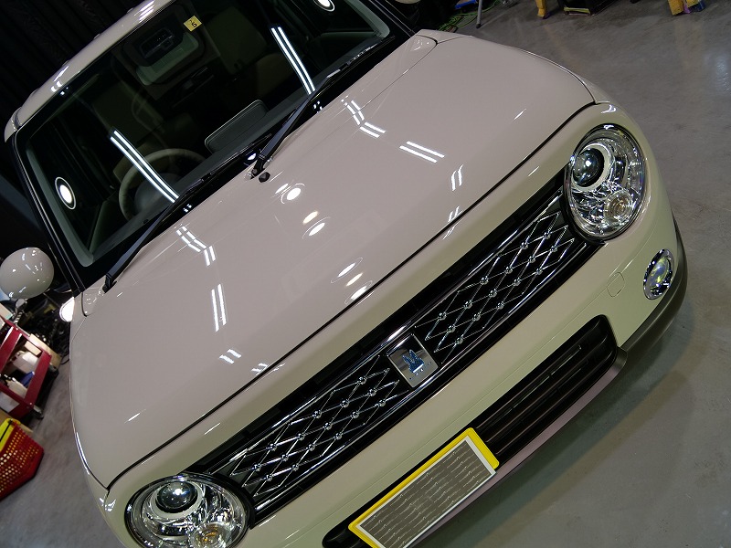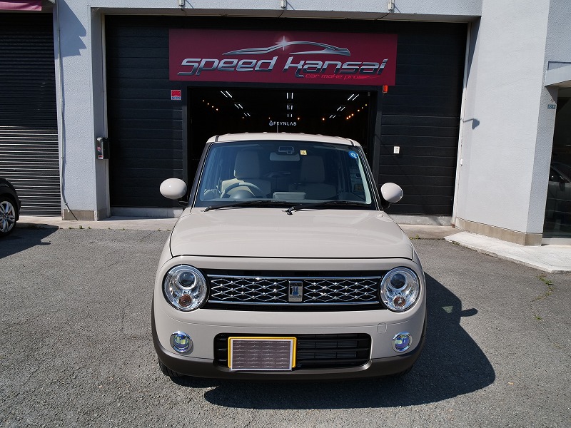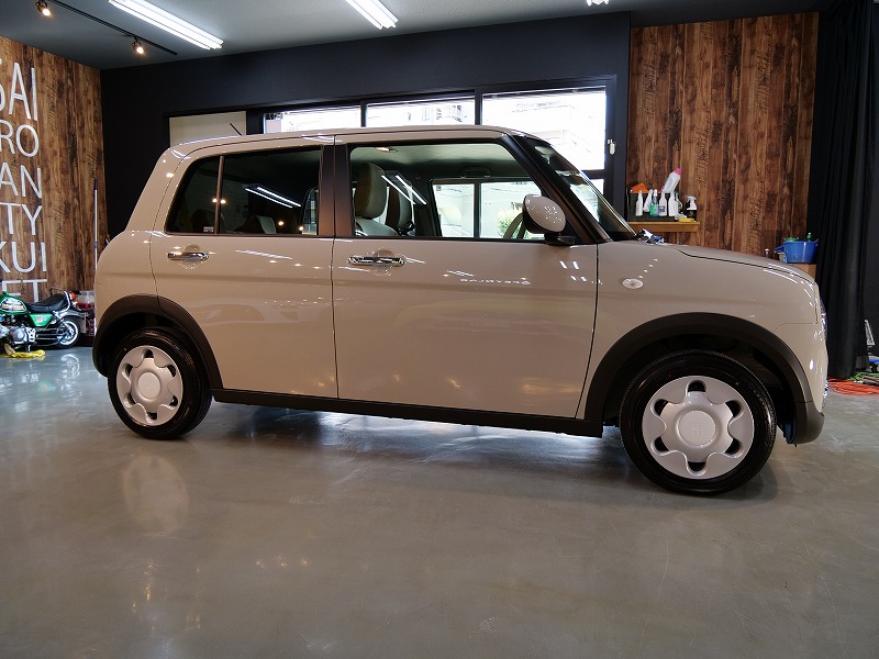大阪府茨木市よりスズキ ラパンのご入庫です!ボディカラーはフォーンベージュメタリック!施工はボディ