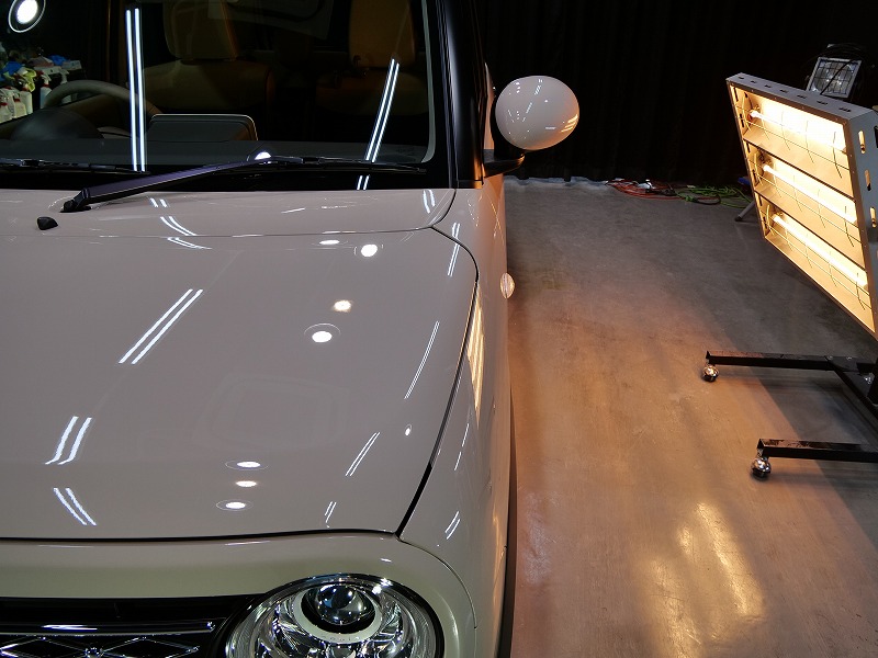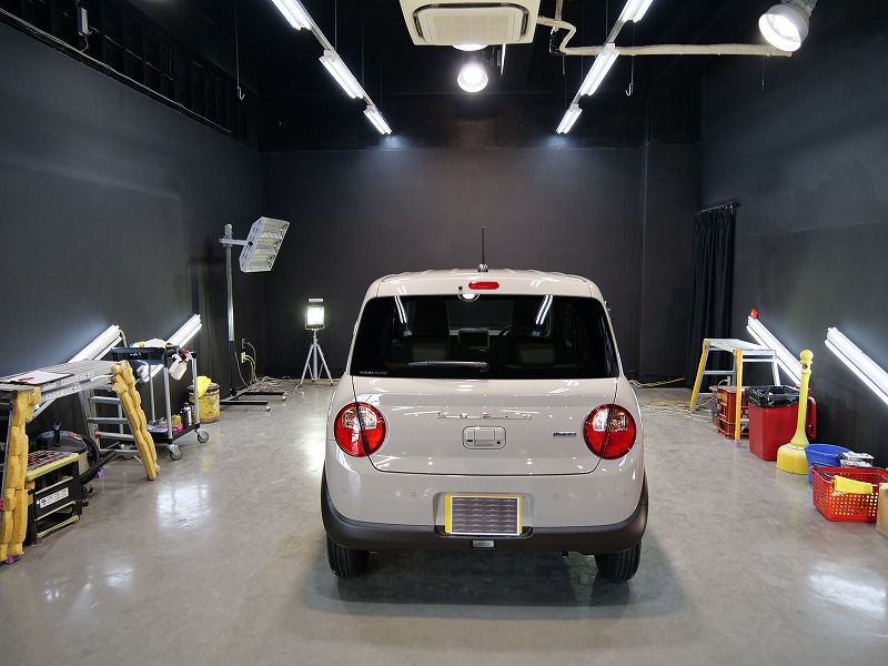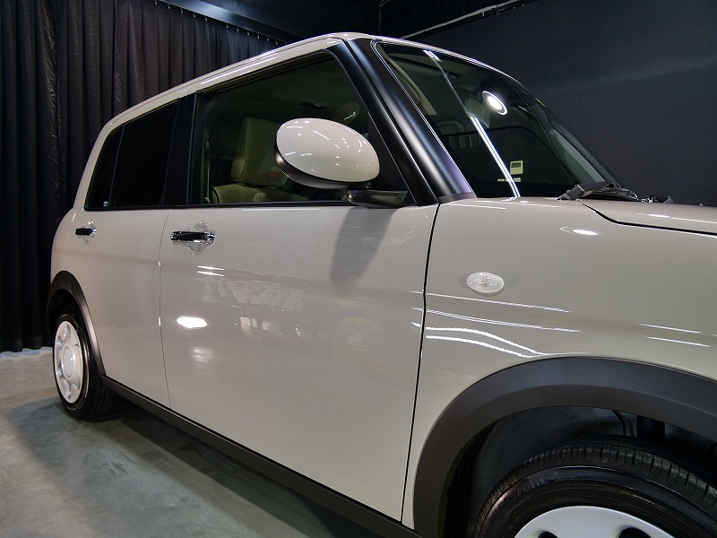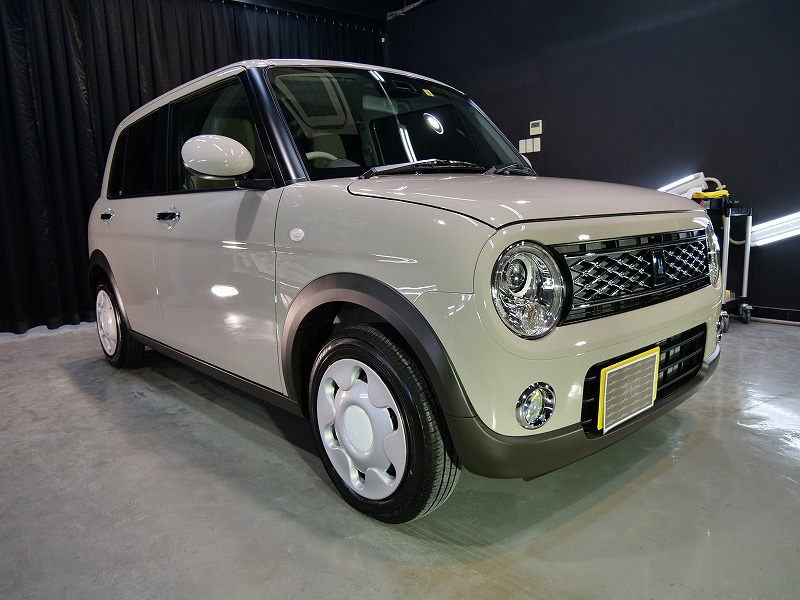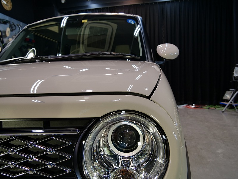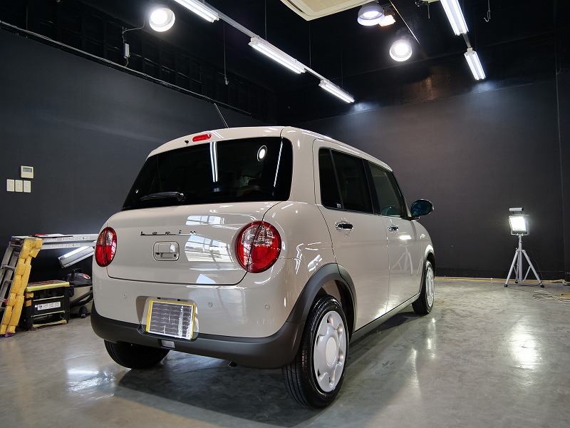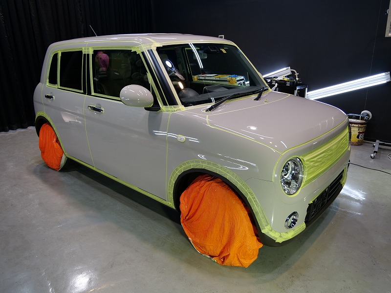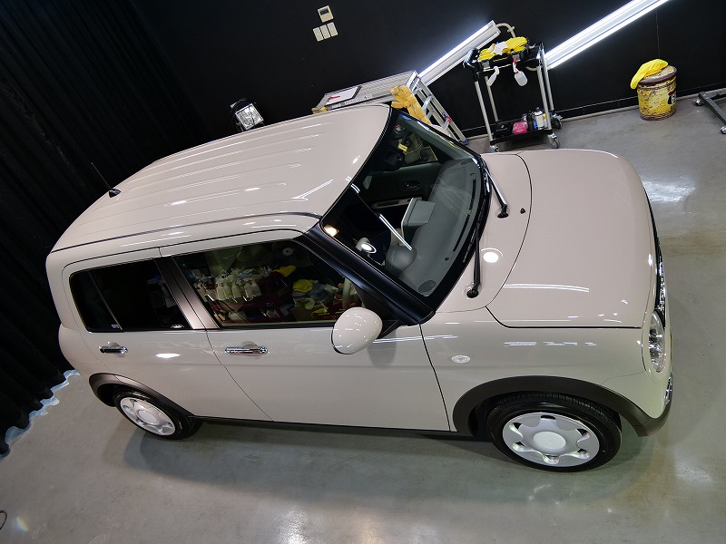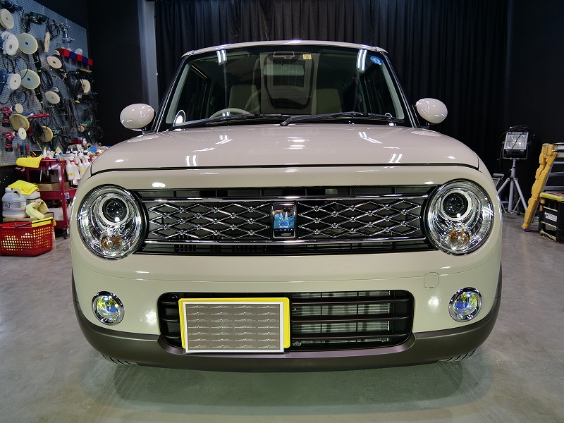 大阪府茨木市よりスズキ ラパンのご入庫です!ボディカラーはフォーンベージュメタリック!施工はボディ