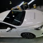 クリスタルホワイトパール!施工はボディには完全無機質のクォーツ/ホイールコーティング/フロントガラス
