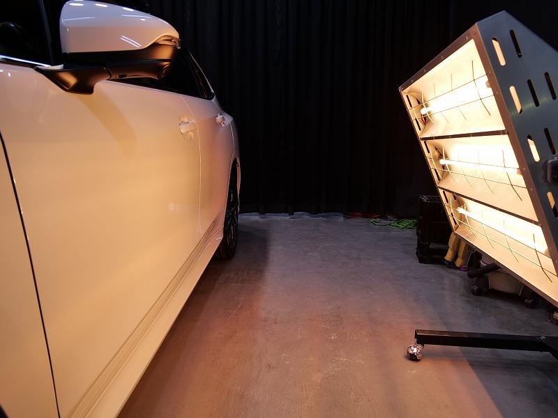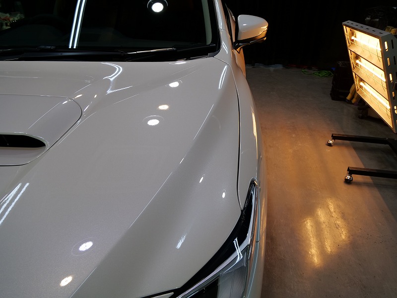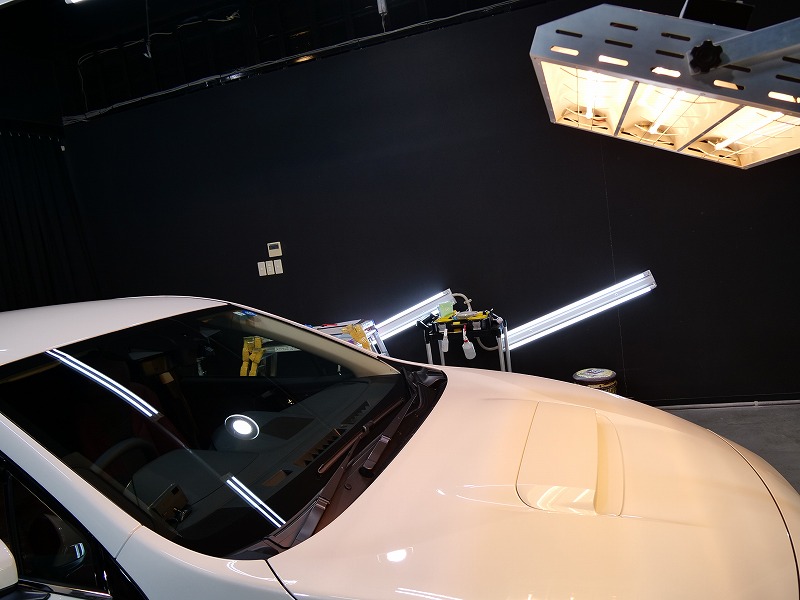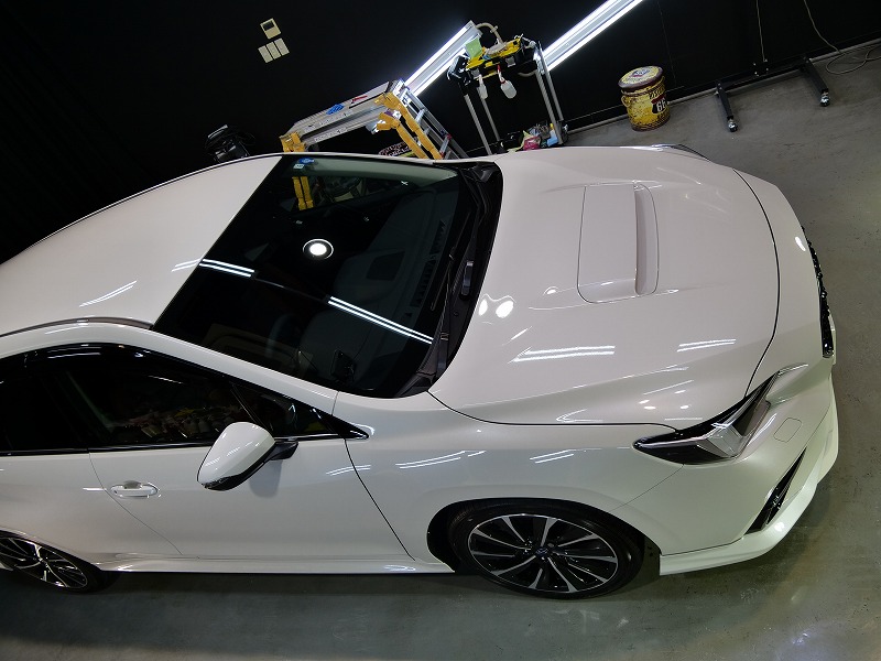 クリスタルホワイトパール!施工はボディには完全無機質のクォーツ/ホイールコーティング/フロントガラス