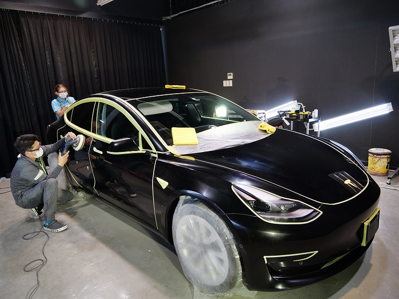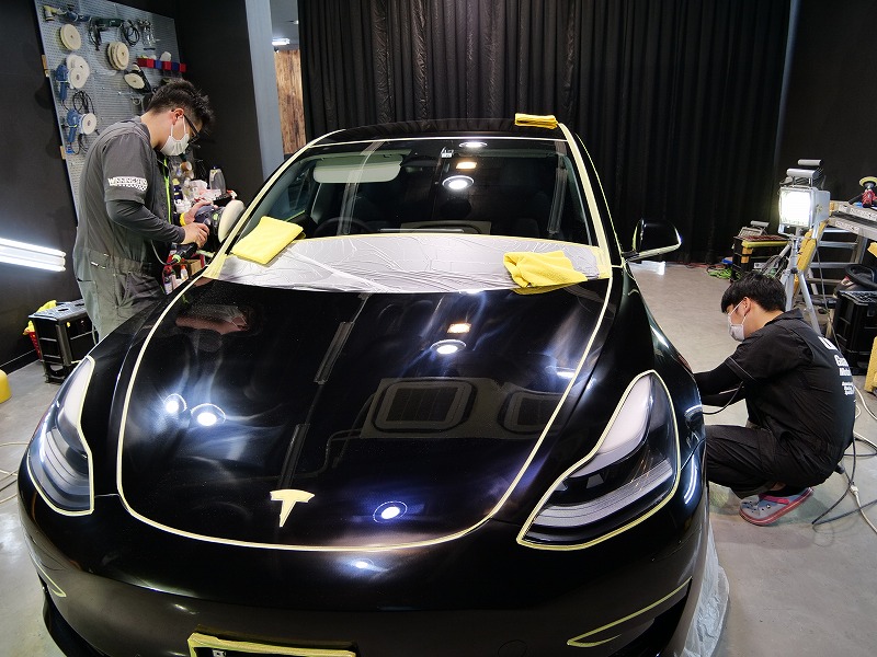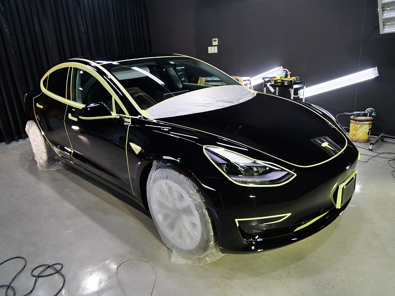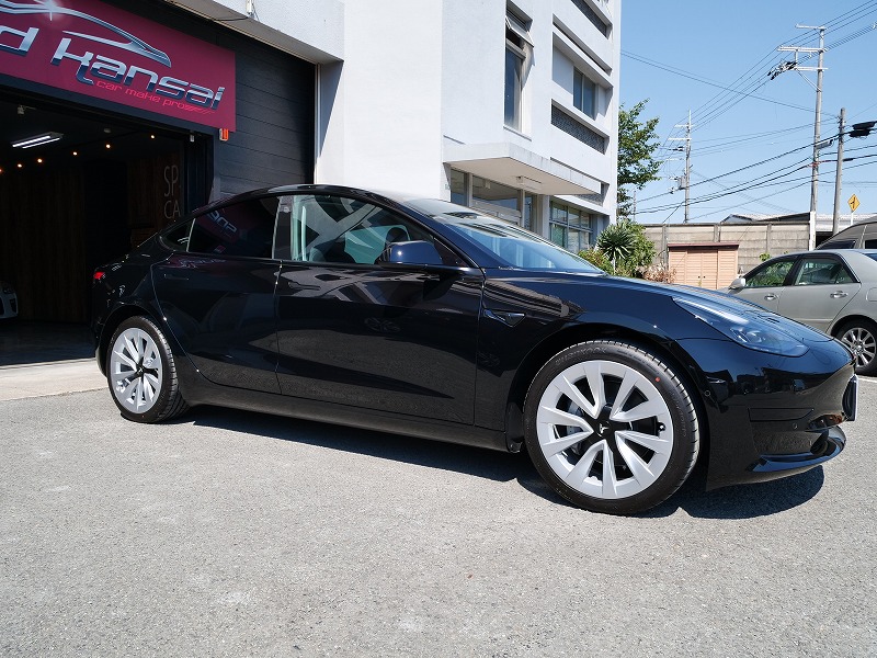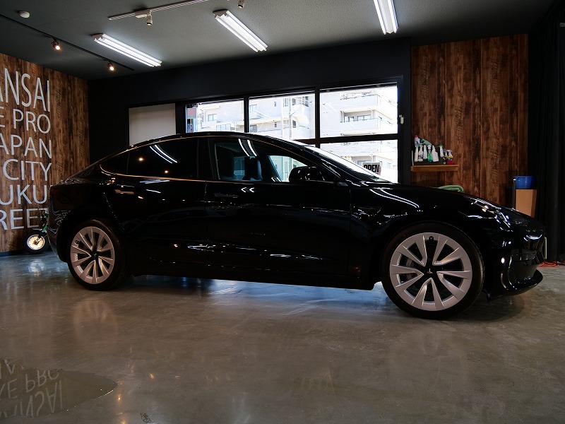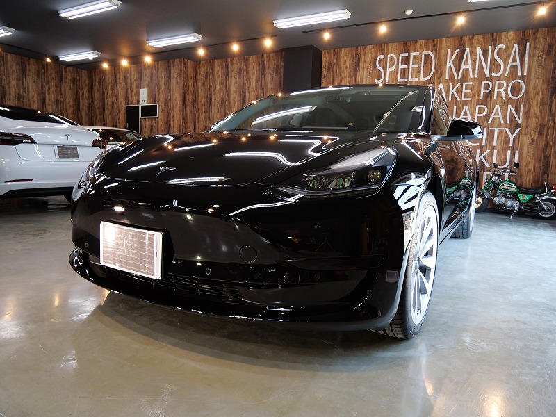 大阪府寝屋川市よりテスラ モデル3 のご入庫です!ボディカラーはブラック(ソリッド)施工はボディには