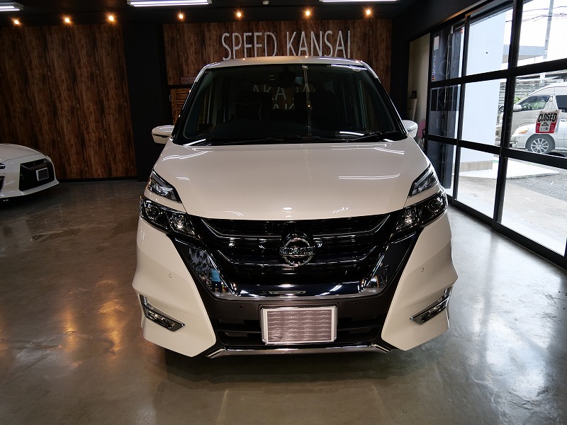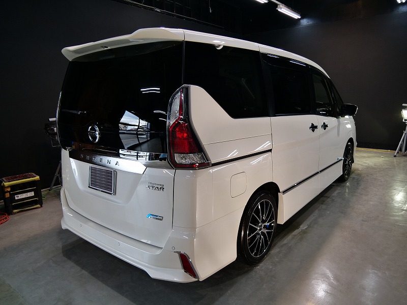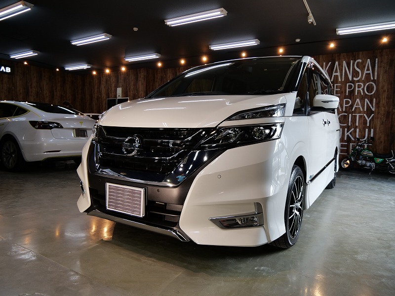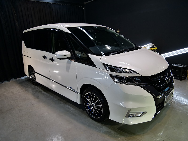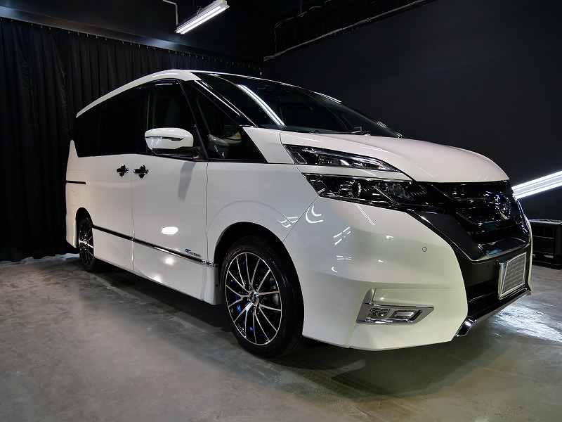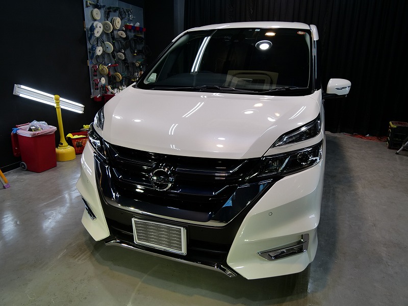 大阪府箕面市より日産セレナのご入庫です!ボディカラーはブリリアントホワイトパール!施工はボディには