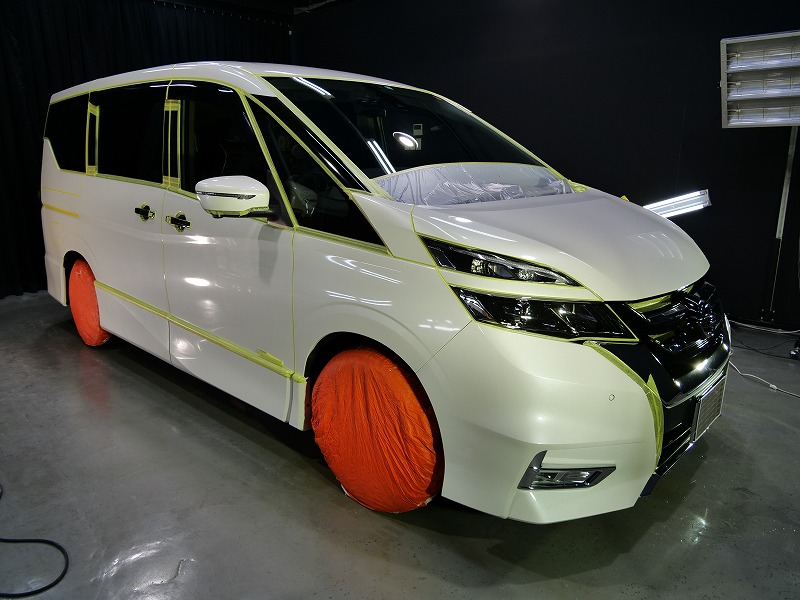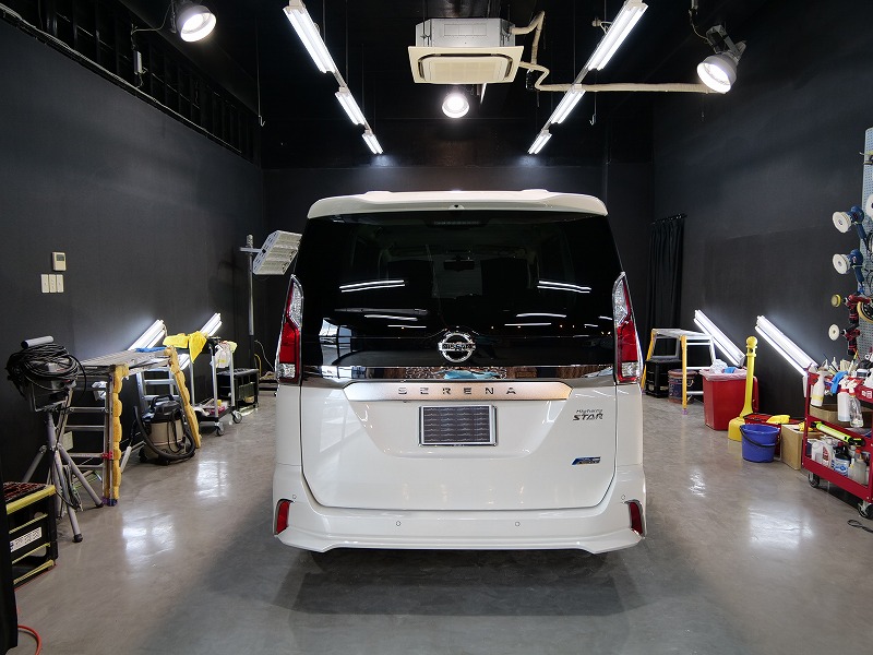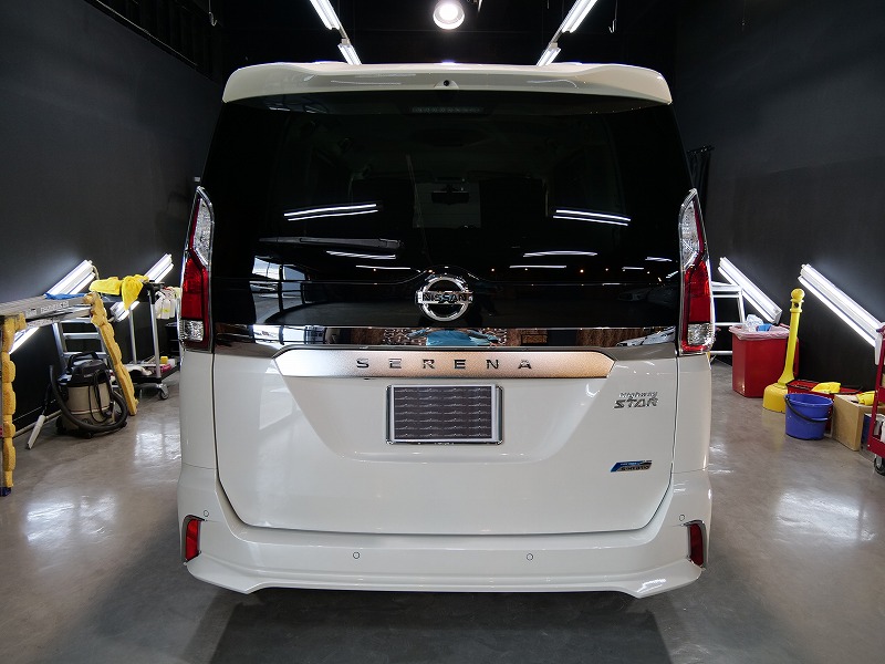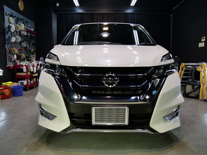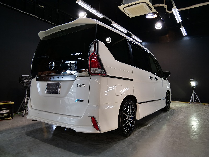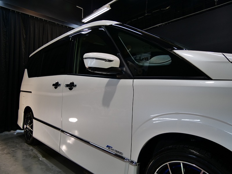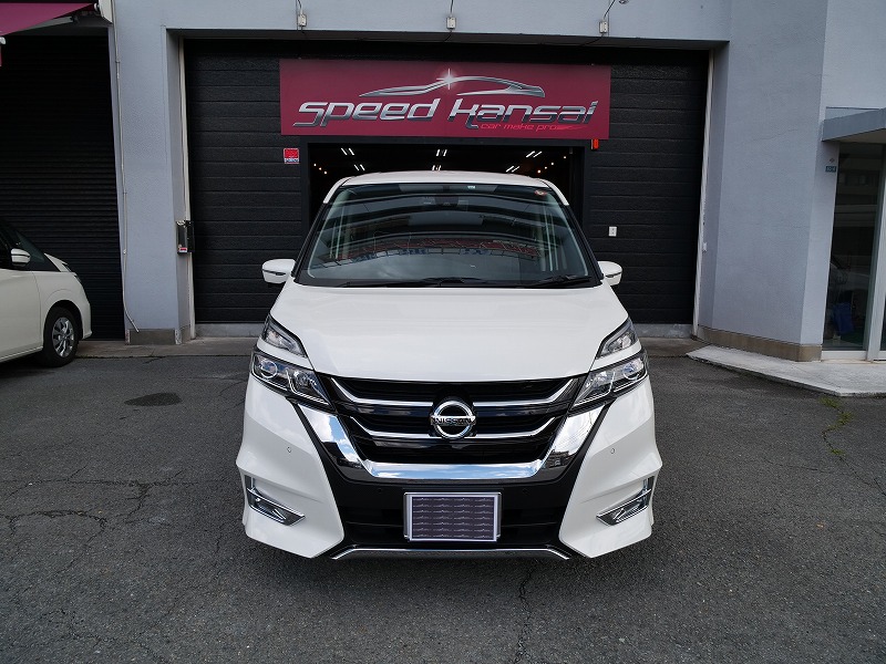 大阪府箕面市より日産セレナのご入庫です!ボディカラーはブリリアントホワイトパール!施工はボディには