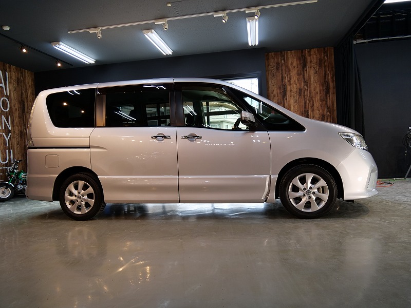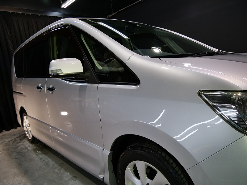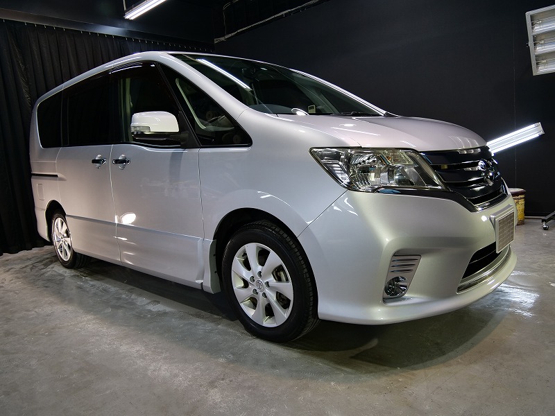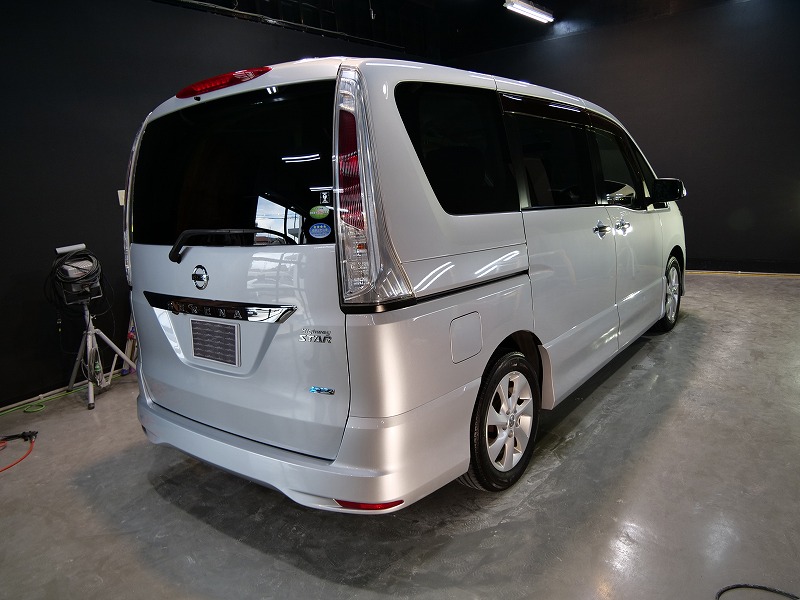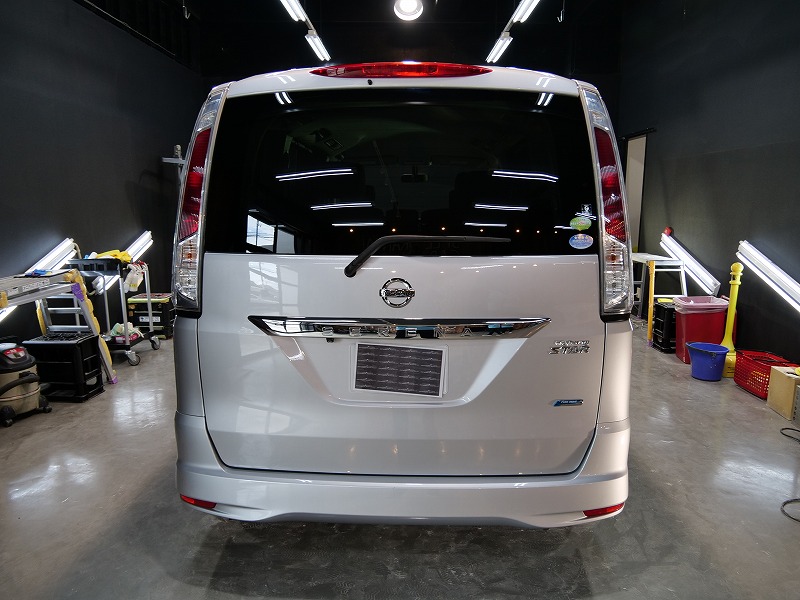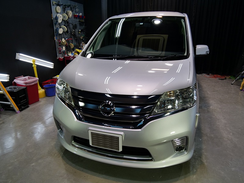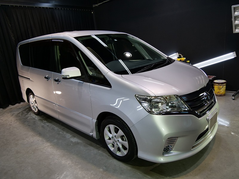 岡山県倉敷市より日産セレナC26のご入庫です!ボディカラーはシルバー!施工はボディにはソフト99製の