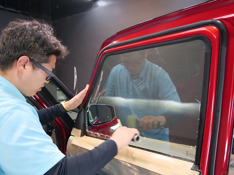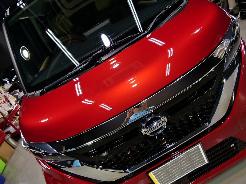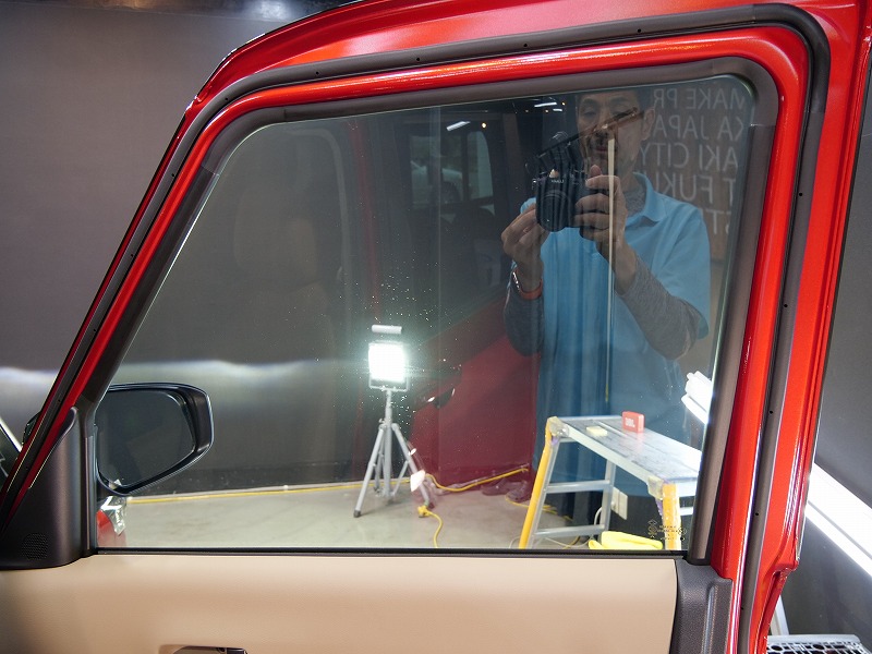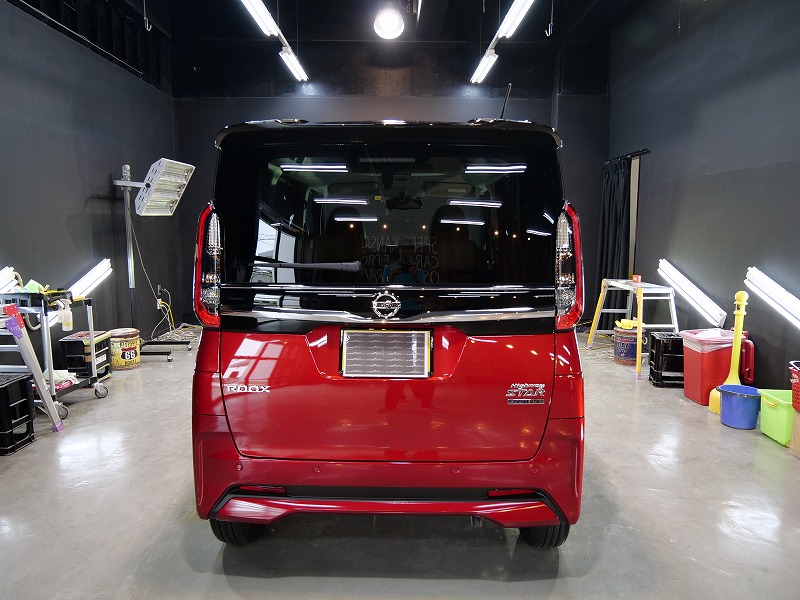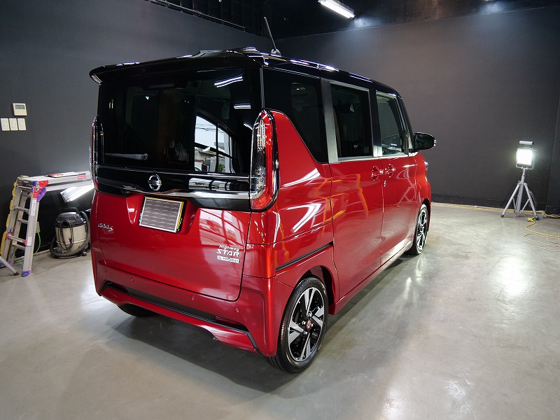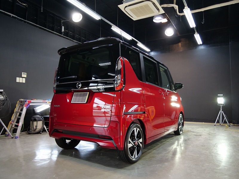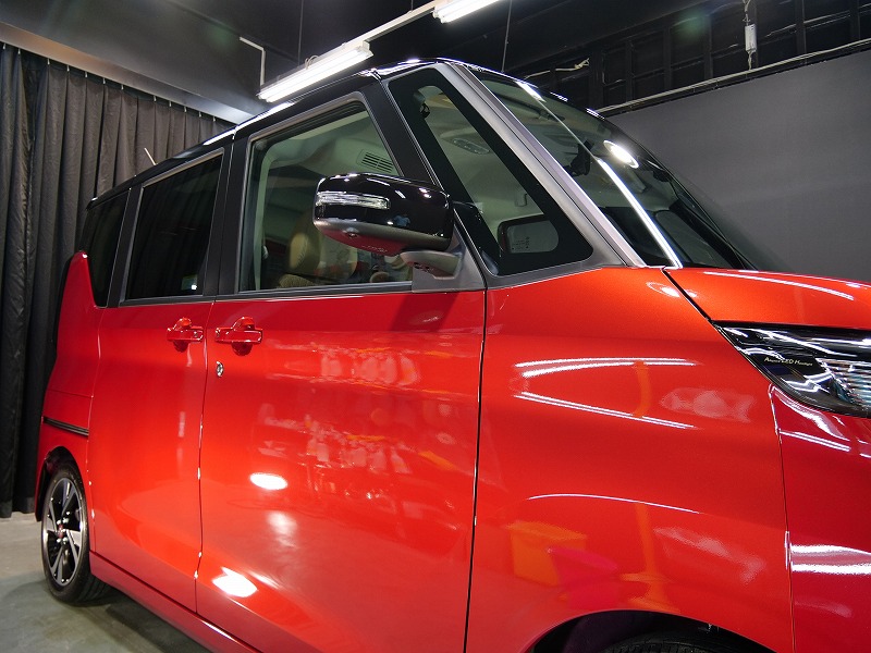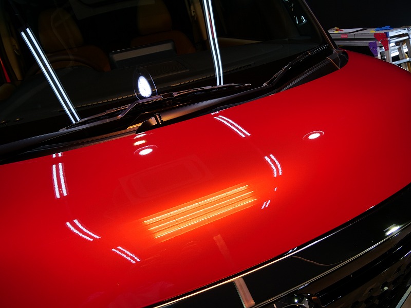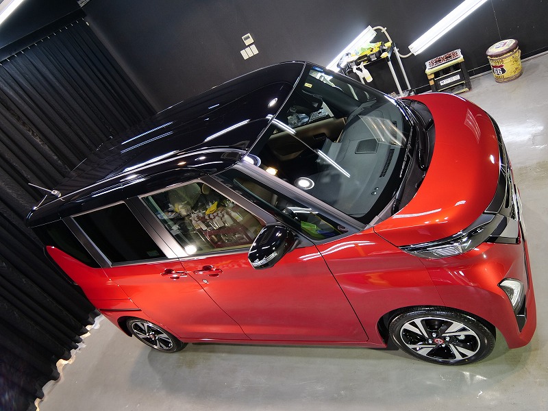 レッド&ルーフブラック!施工はボディには完全無機質のクォーツ/ホイールコーティング/ウィンドウ撥水/