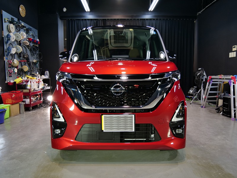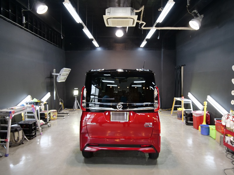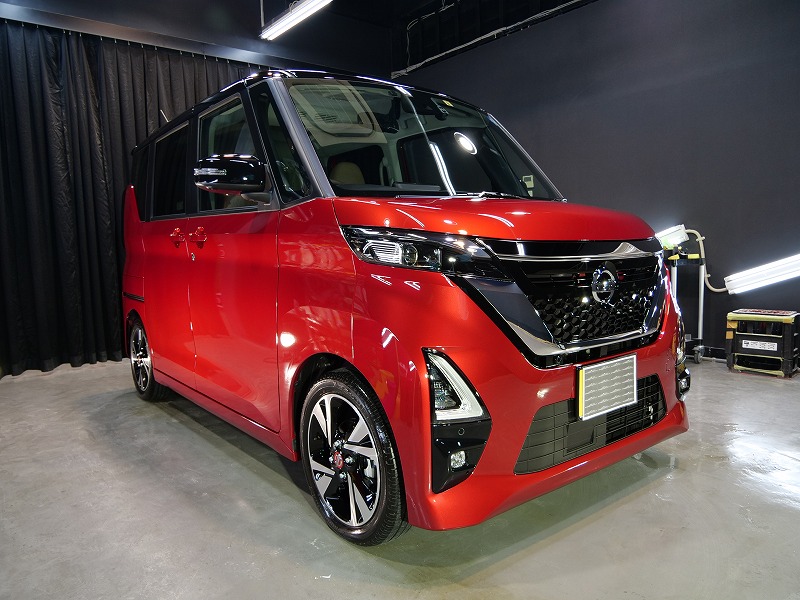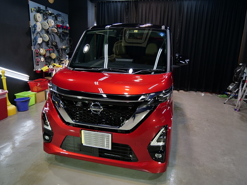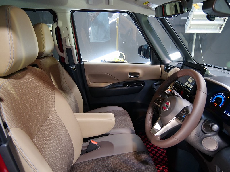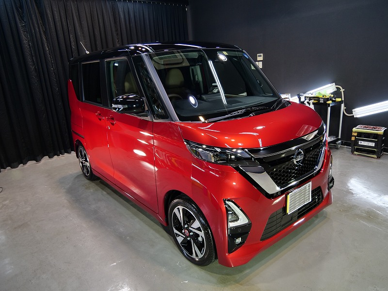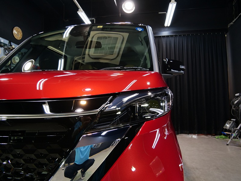 フロントウィンドウガラス2面、断熱透明フィルムの4点です!奥様がお乗りになられるルークス綺麗に仕上げ
