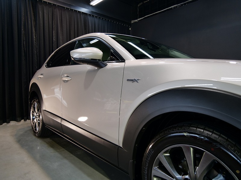 大阪府高槻市よりマツダCX30のご入庫です!ボディカラーはプラチナクォーツメタリック!施工はボディには