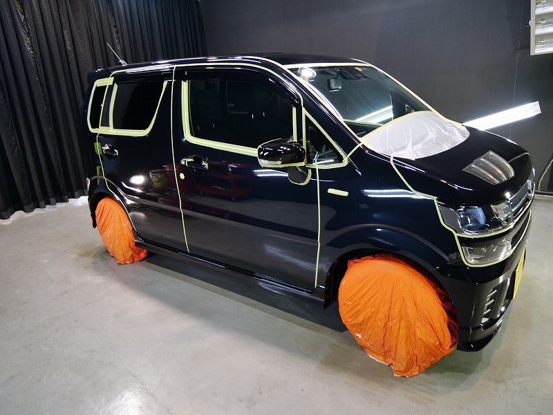 大阪府茨木市より新型スズキ ワゴンRのご入庫です!ボディカラーはブルーイッシュブラックパール!施工は