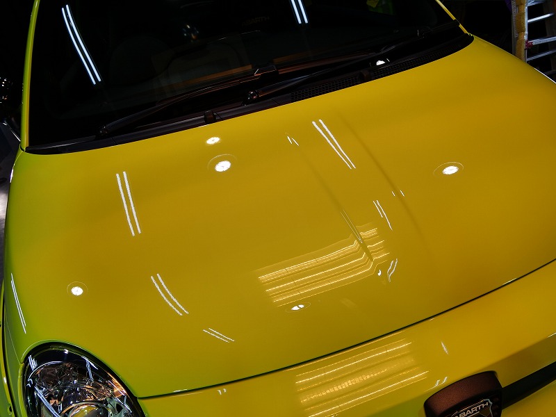 黄色にも見えると言う不思議なカラーですね!新車でしたがきっちり磨いて最高の状態でコーティングを施工
