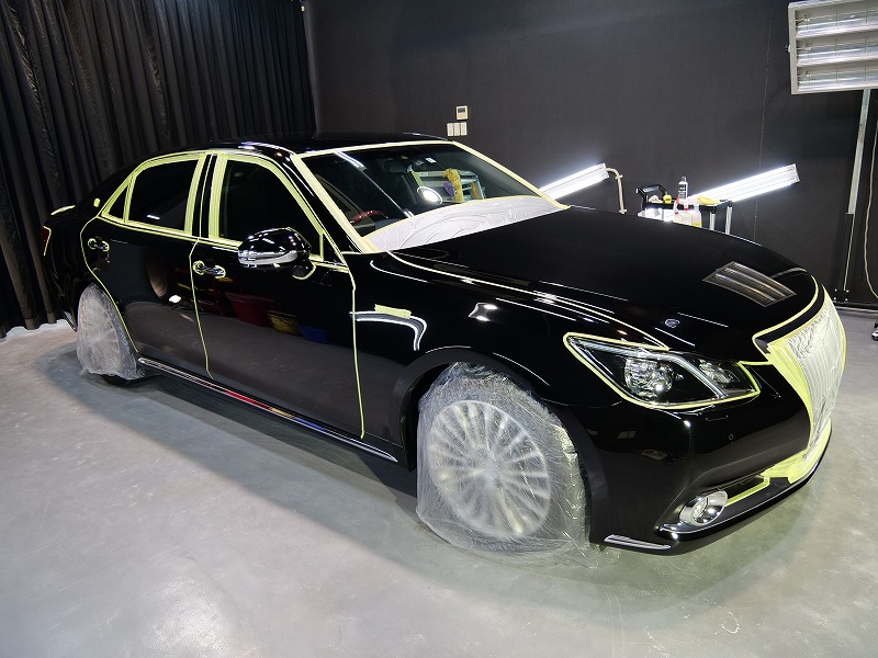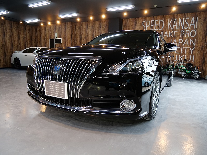兵庫県神戸市よりトヨタ クラウンマジェスタのご入庫です!ボディカラーはソリッドブラック!施工はボディ