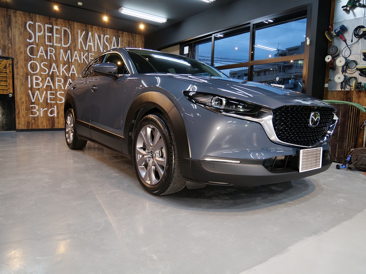 大阪府豊中市よりマツダCX30のご入庫です!ボディカラーはポリメタルグレーメタリック!施工はボディ