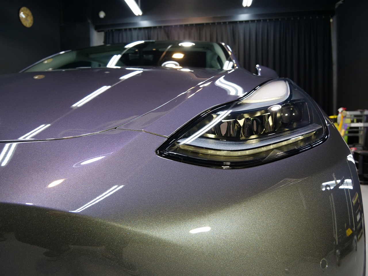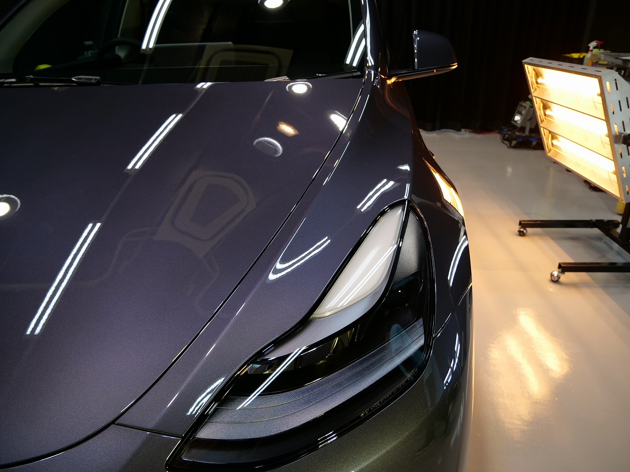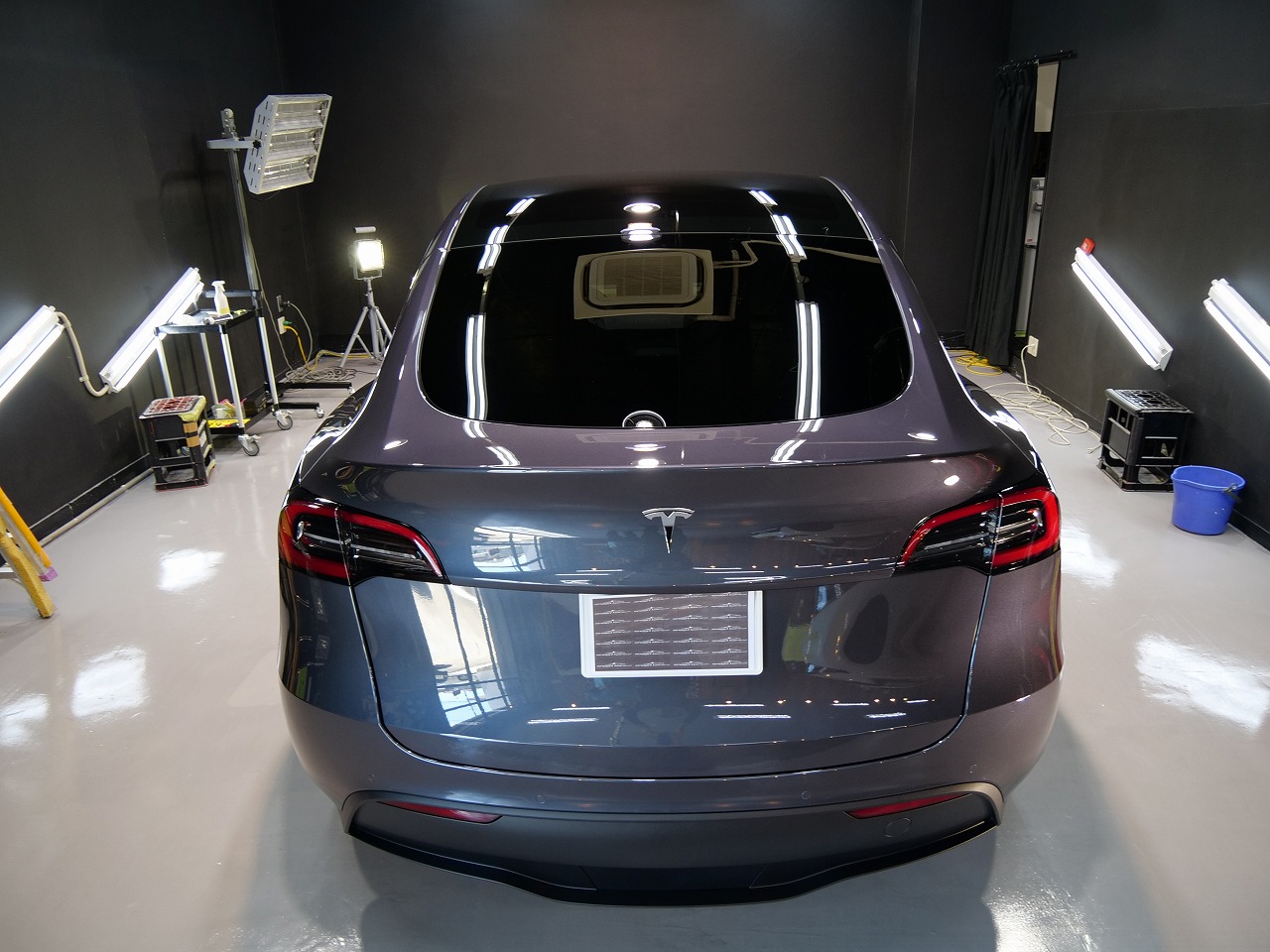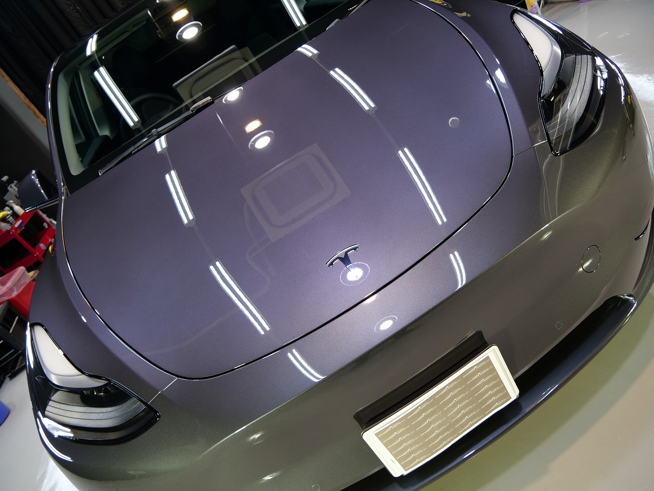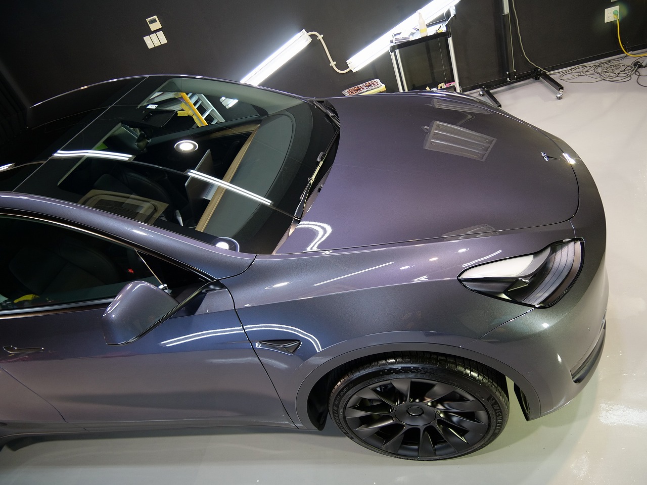 モデルyは初の施工でしたが思ったよりサイズが大きく感じました。それとモデル3のガラスは透明でしたが