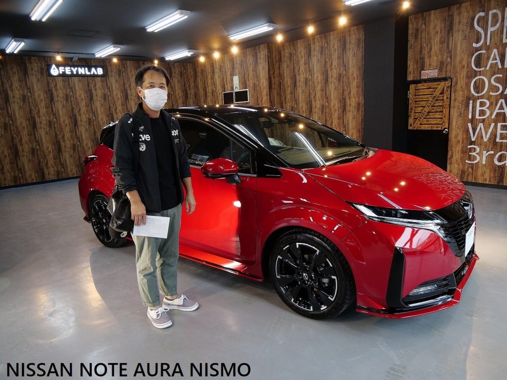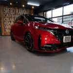 大阪府吹田市よりニッサン ノートオーラ ニスモのご入庫です!ボディカラーはガーネットレッド&ルーフ