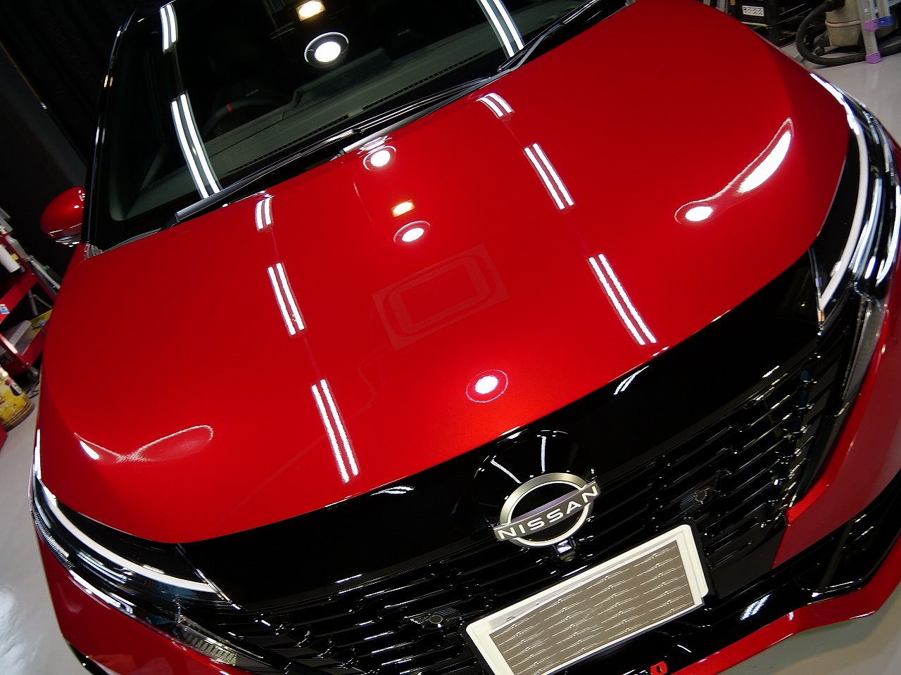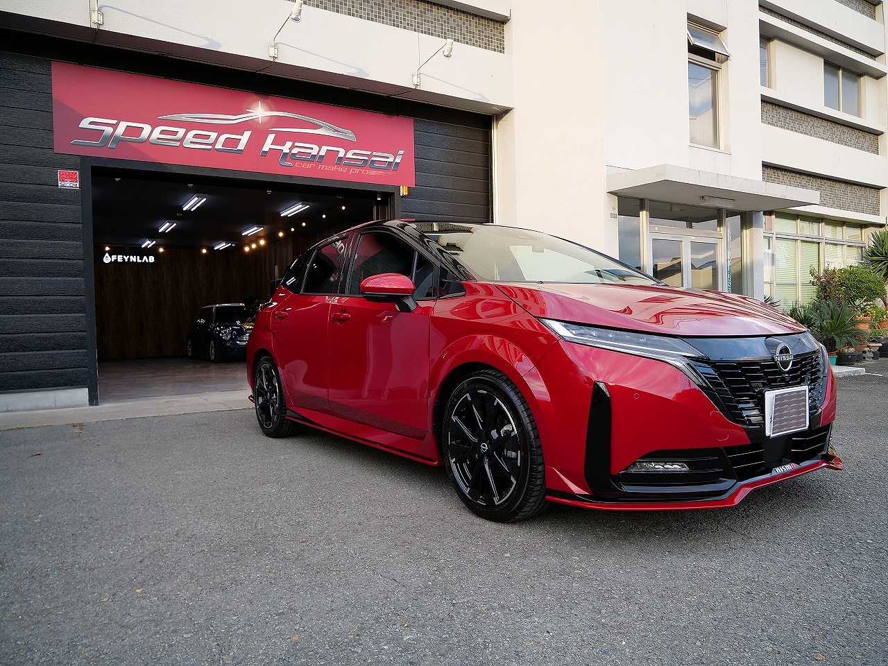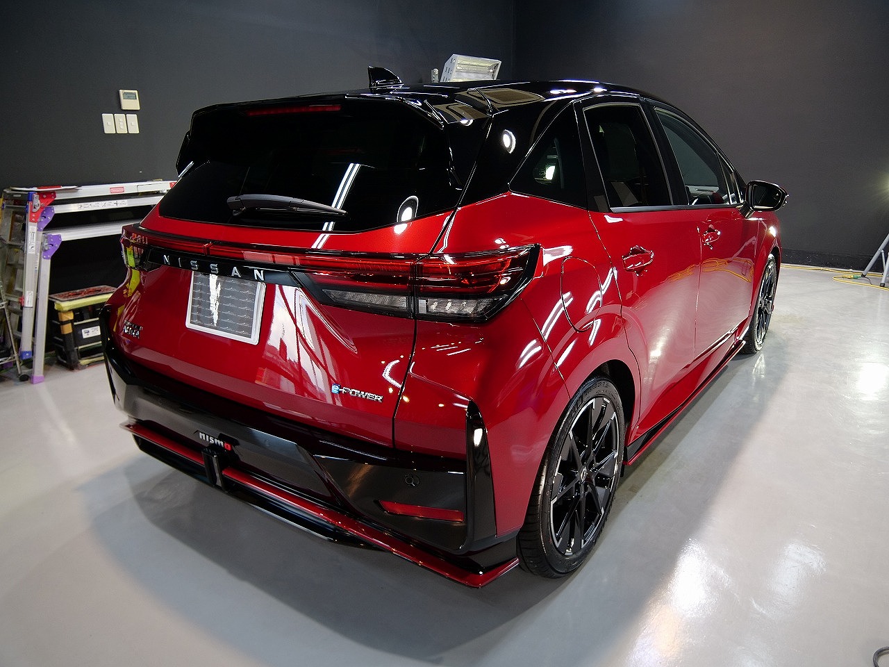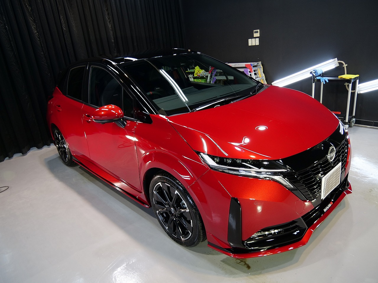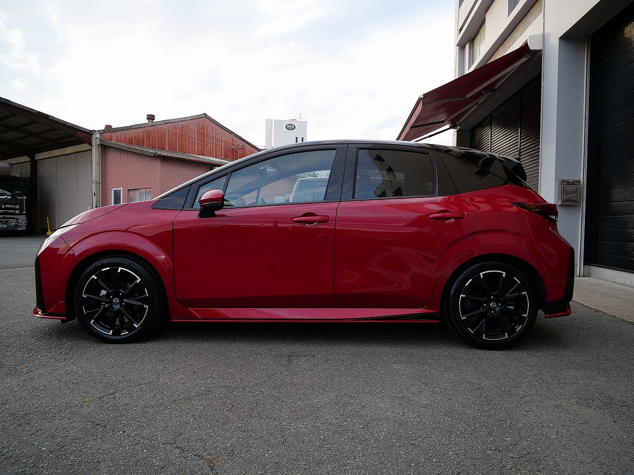 大阪府吹田市よりニッサン ノートオーラ ニスモのご入庫です!ボディカラーはガーネットレッド&ルーフ