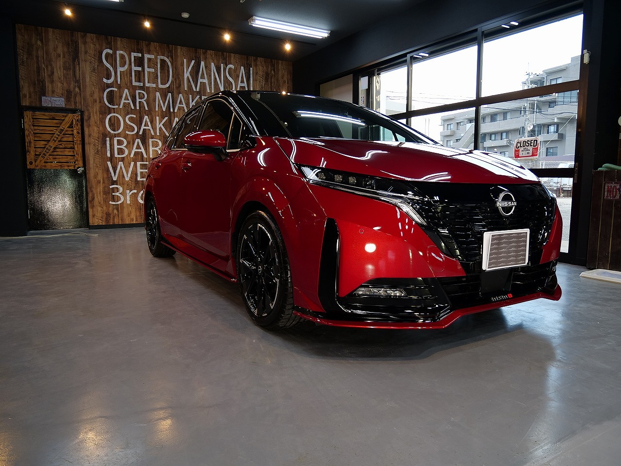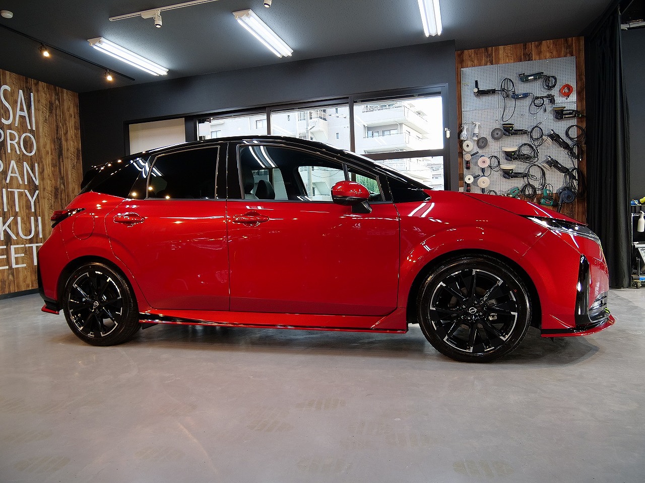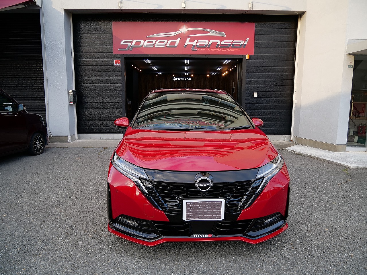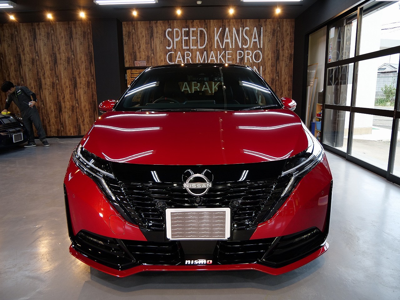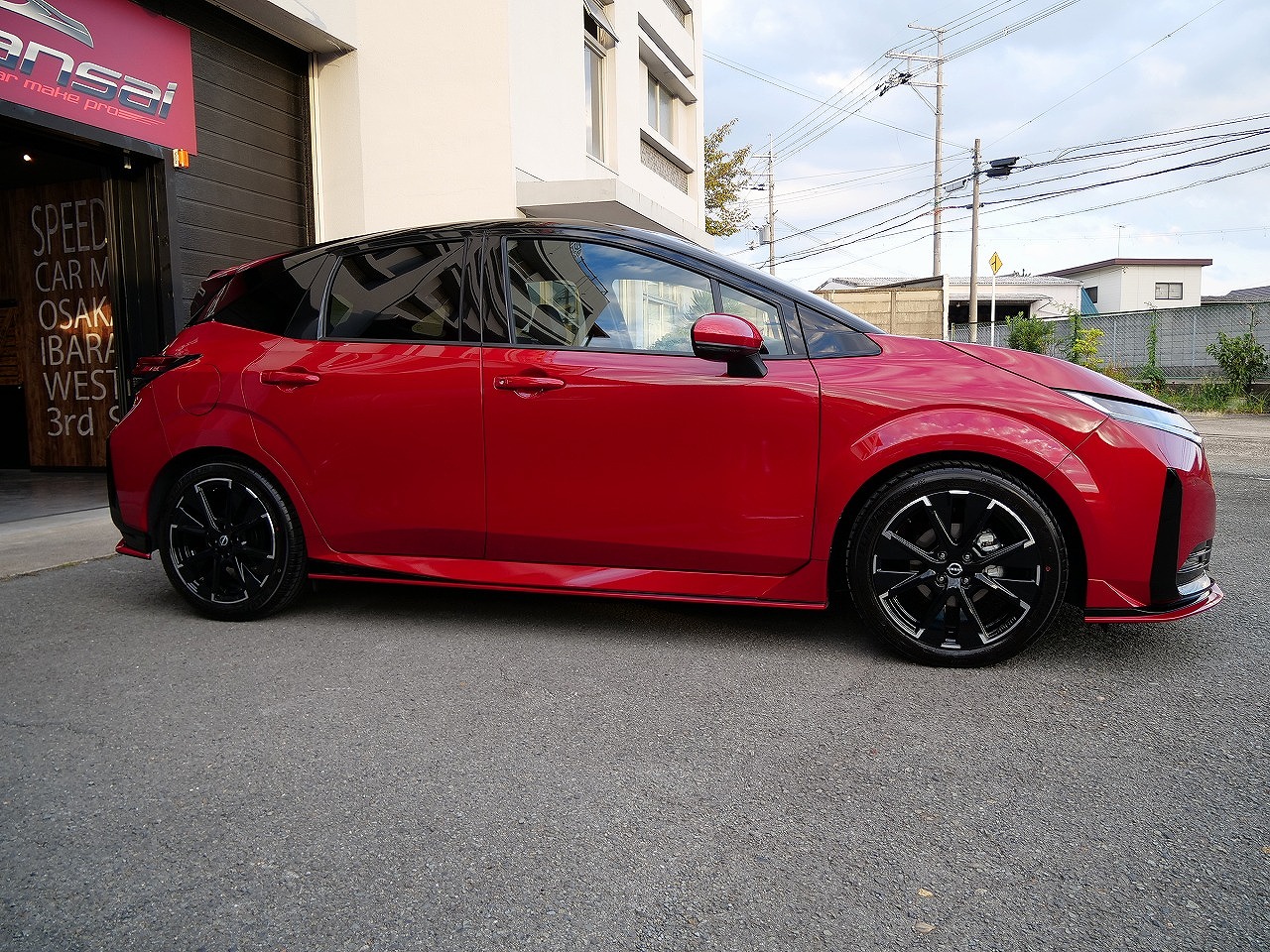 大阪府吹田市よりニッサン ノートオーラ ニスモのご入庫です!ボディカラーはガーネットレッド&ルーフ