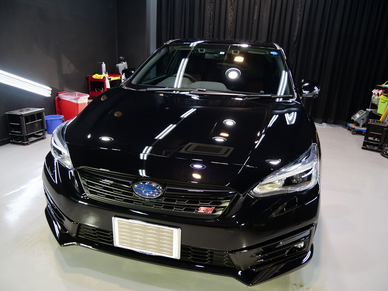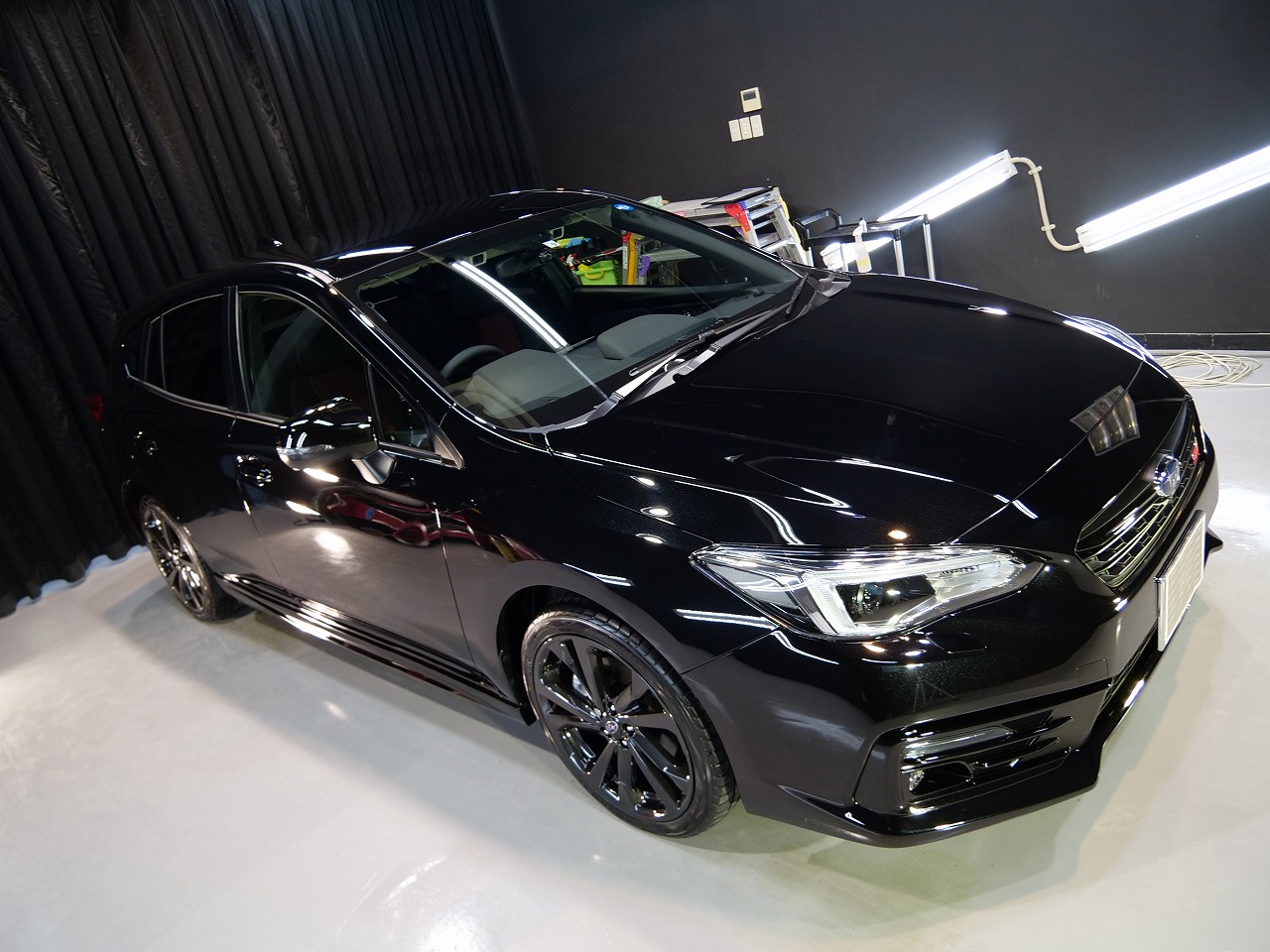 I様いつも遠い所、当店にお任せ頂き有難う御座います!スバルの黒が最高に輝くように施工させて