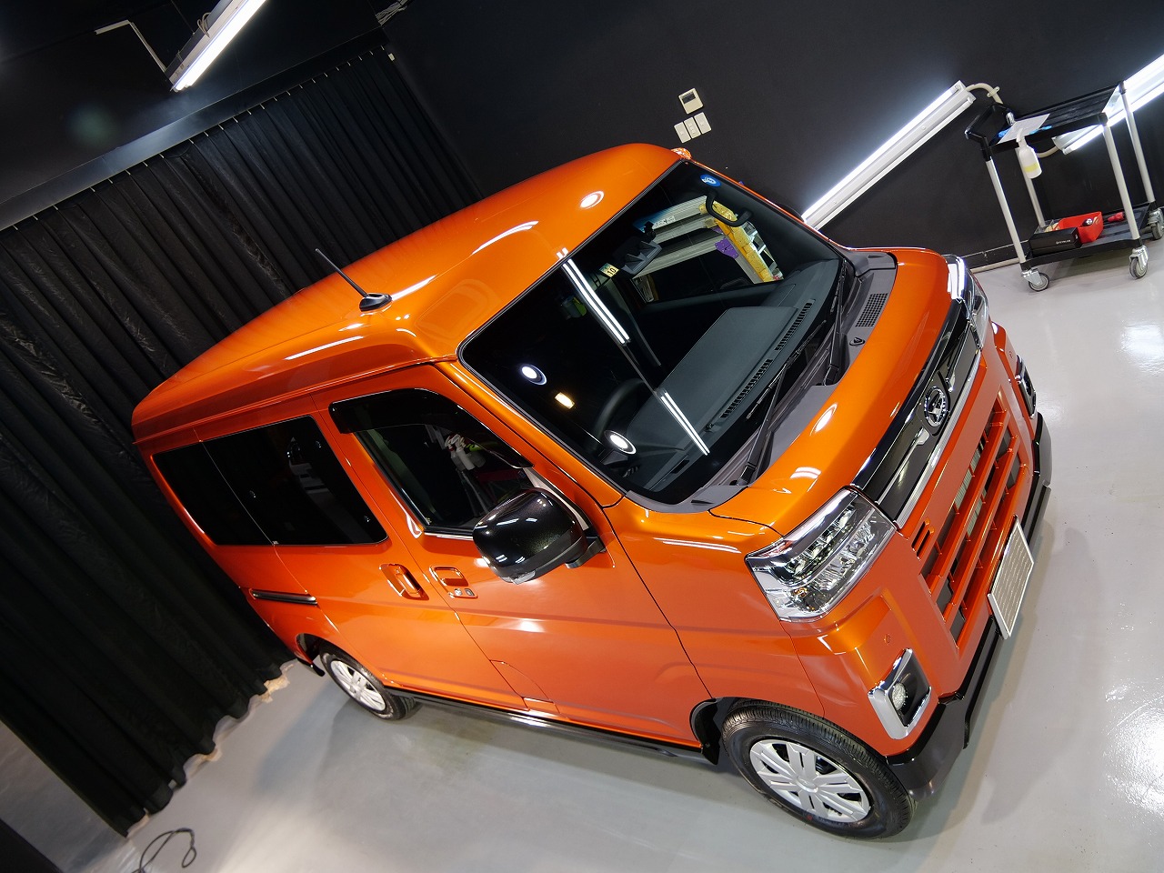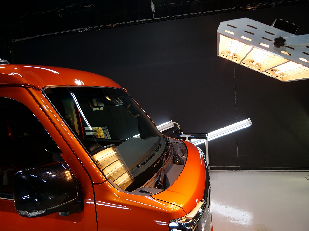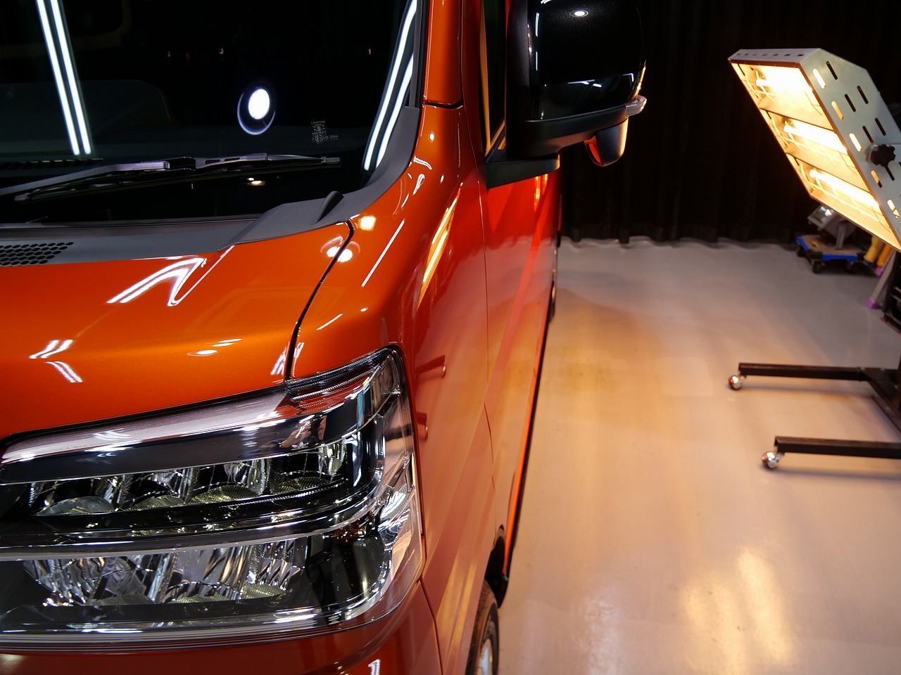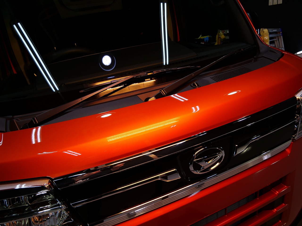 オレンジ!施工はボディには完全無機質のクォーツガラスコーティング/フロントガラス撥水2年耐久