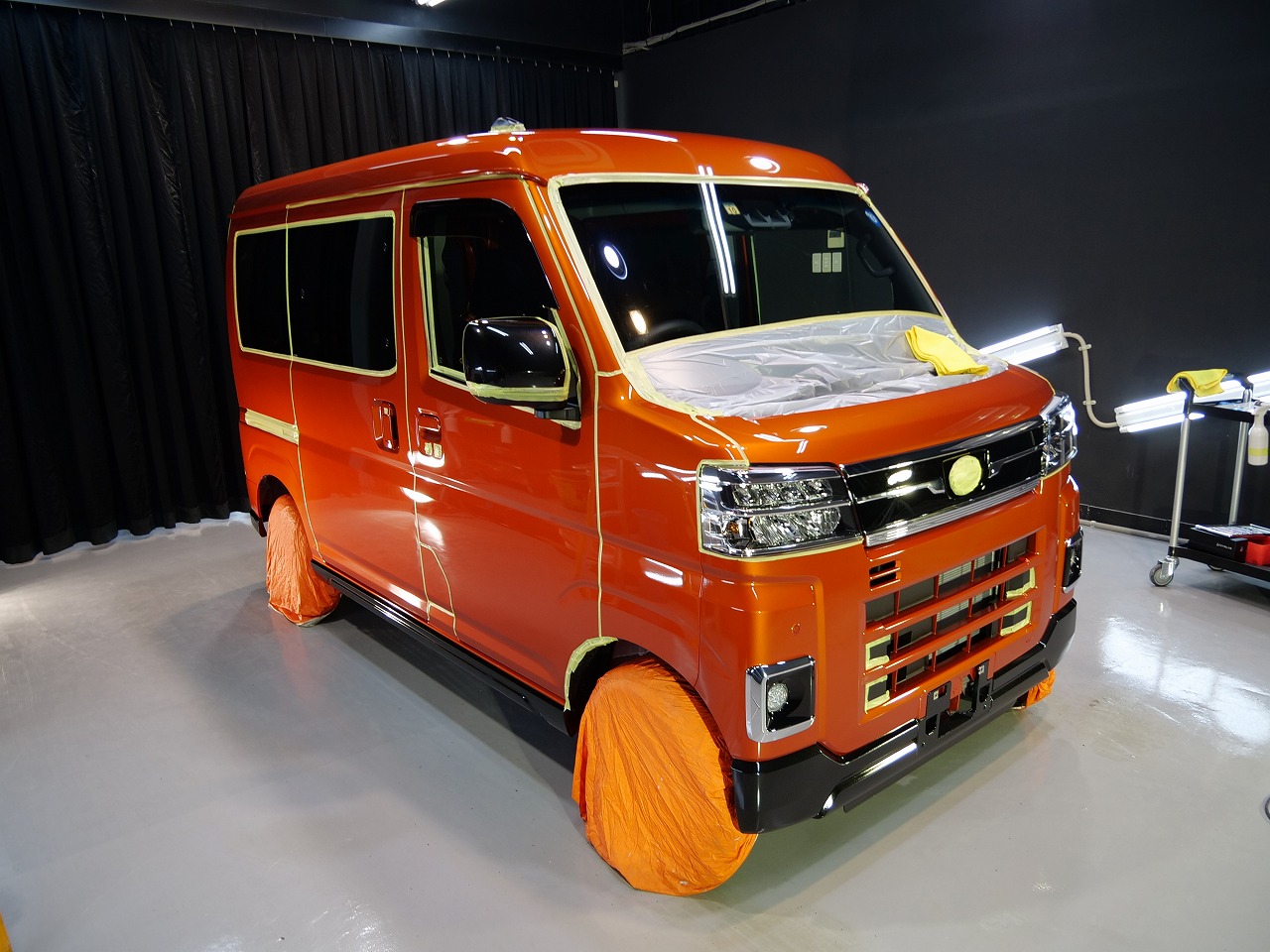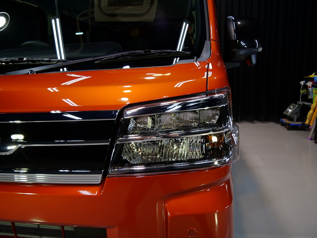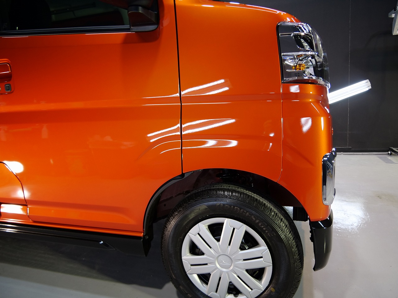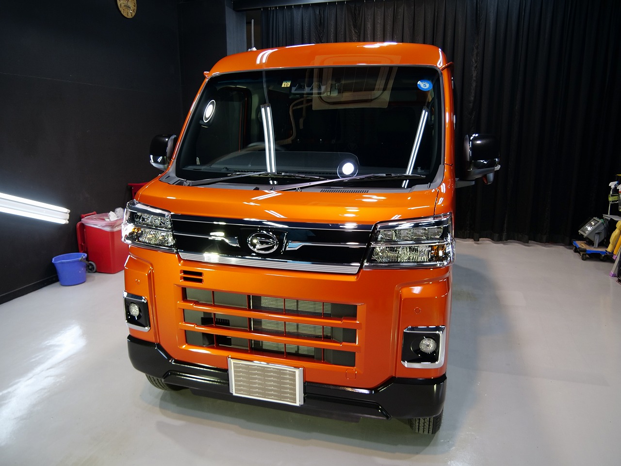 オレンジ!施工はボディには完全無機質のクォーツガラスコーティング/フロントガラス撥水2年耐久