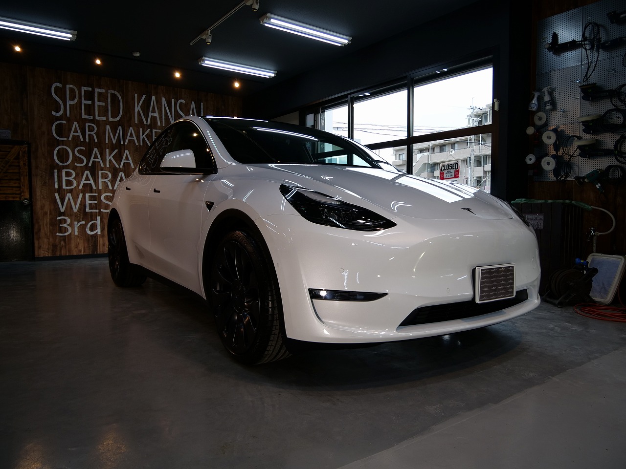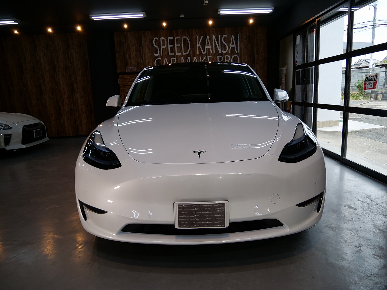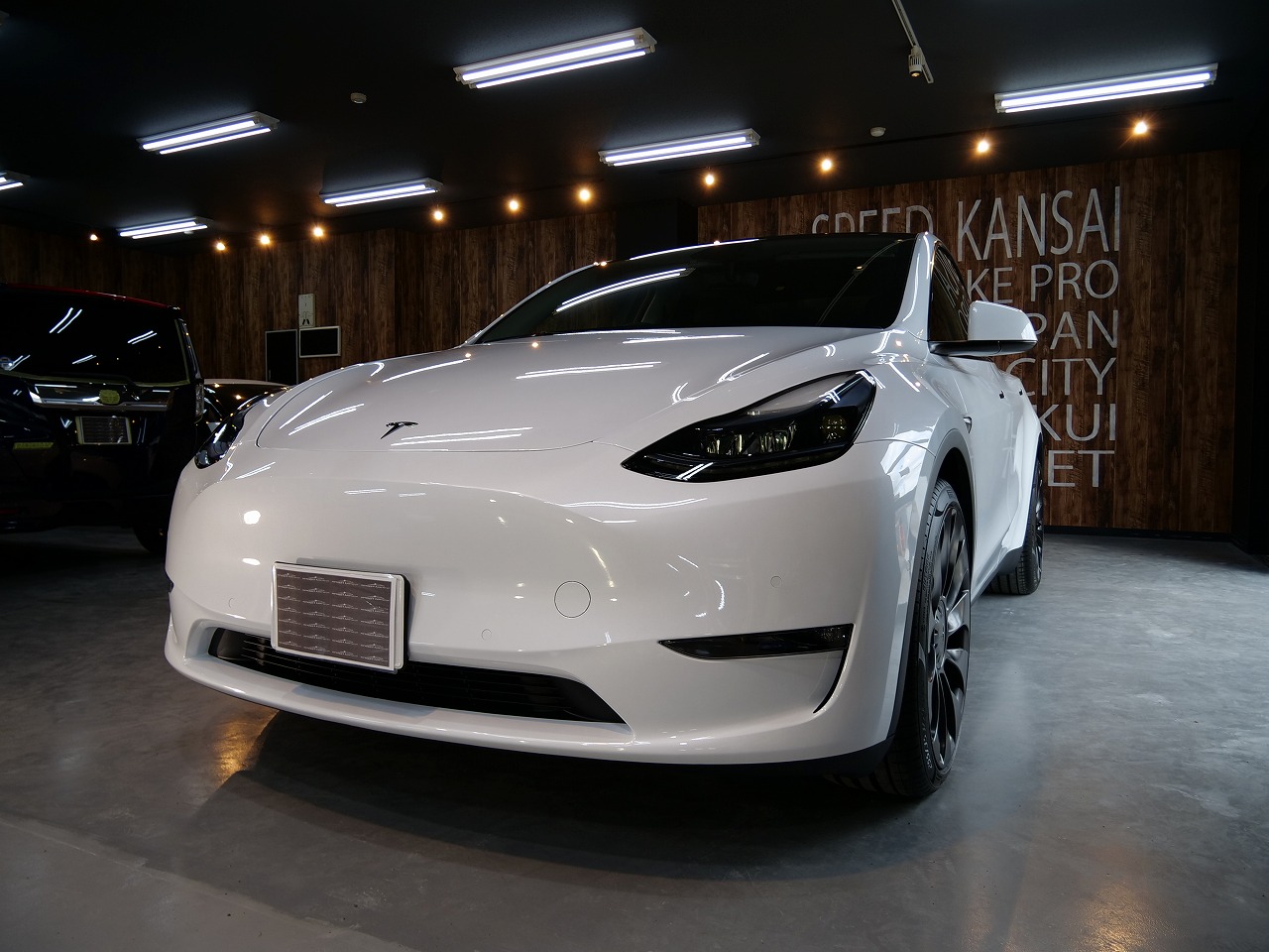 兵庫県尼崎市よりテスラ モデルY デュアルモニターのご入庫です!ボディカラーはパールホワイト
