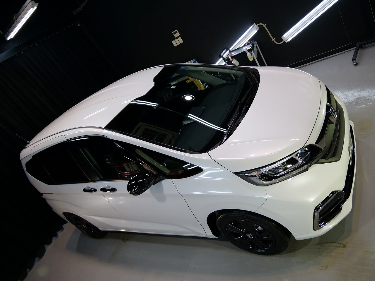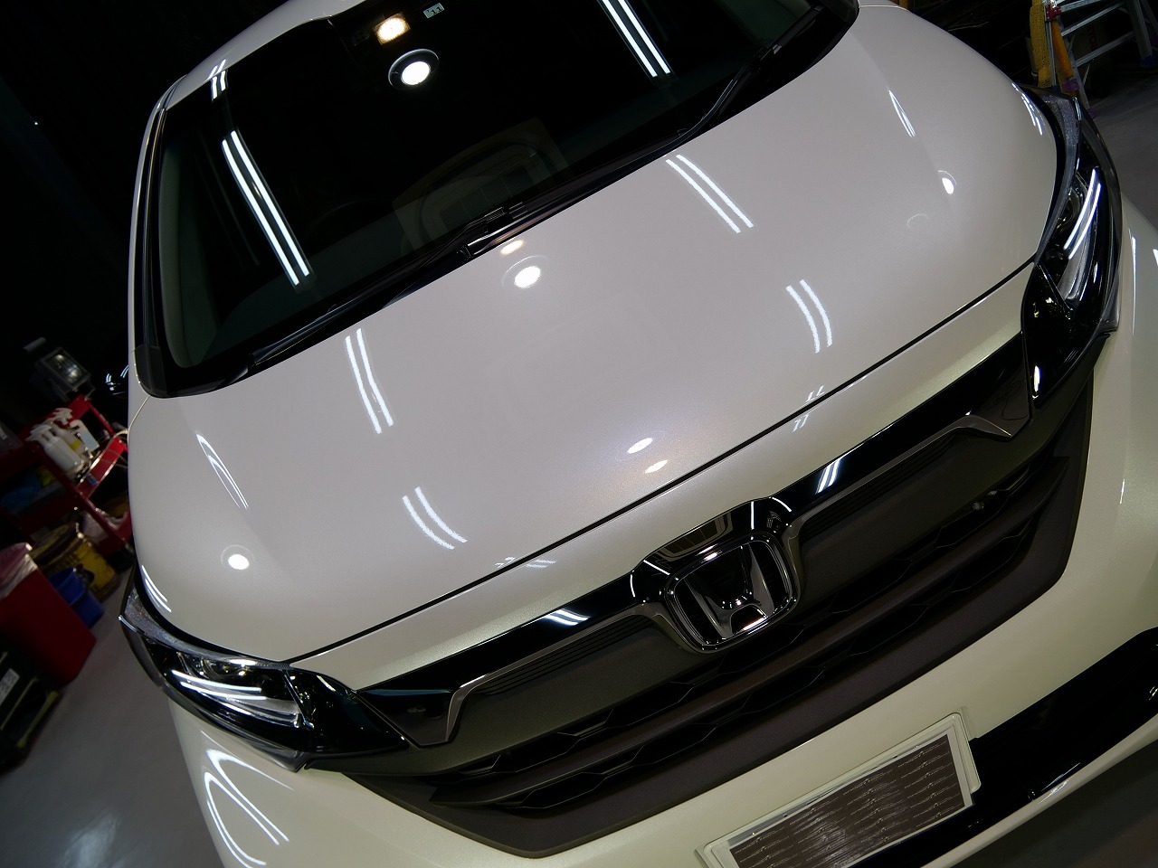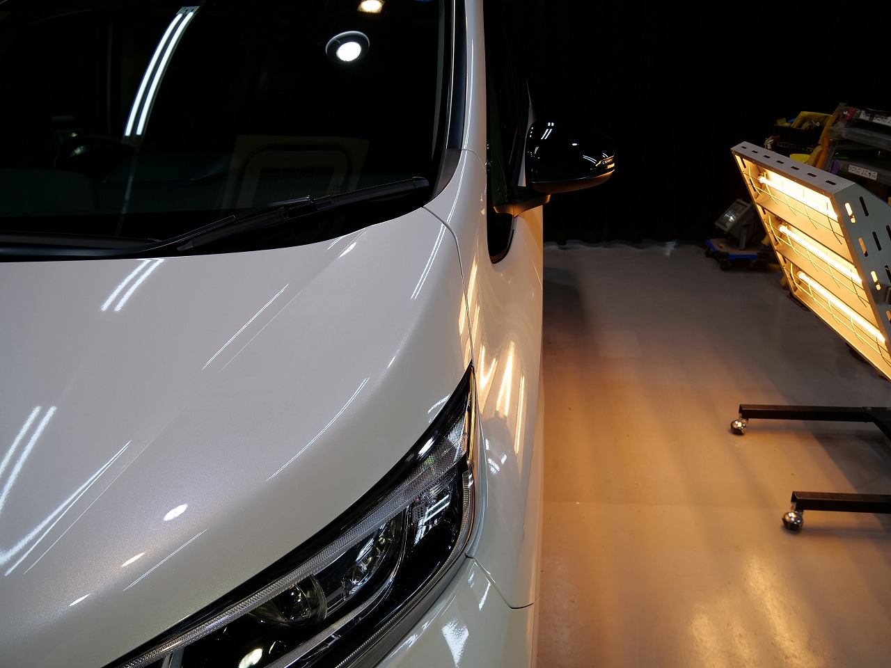 ボディカラーはプラチナホワイトパール!施工はボディには完全無機質のクォーツガラスコーティング