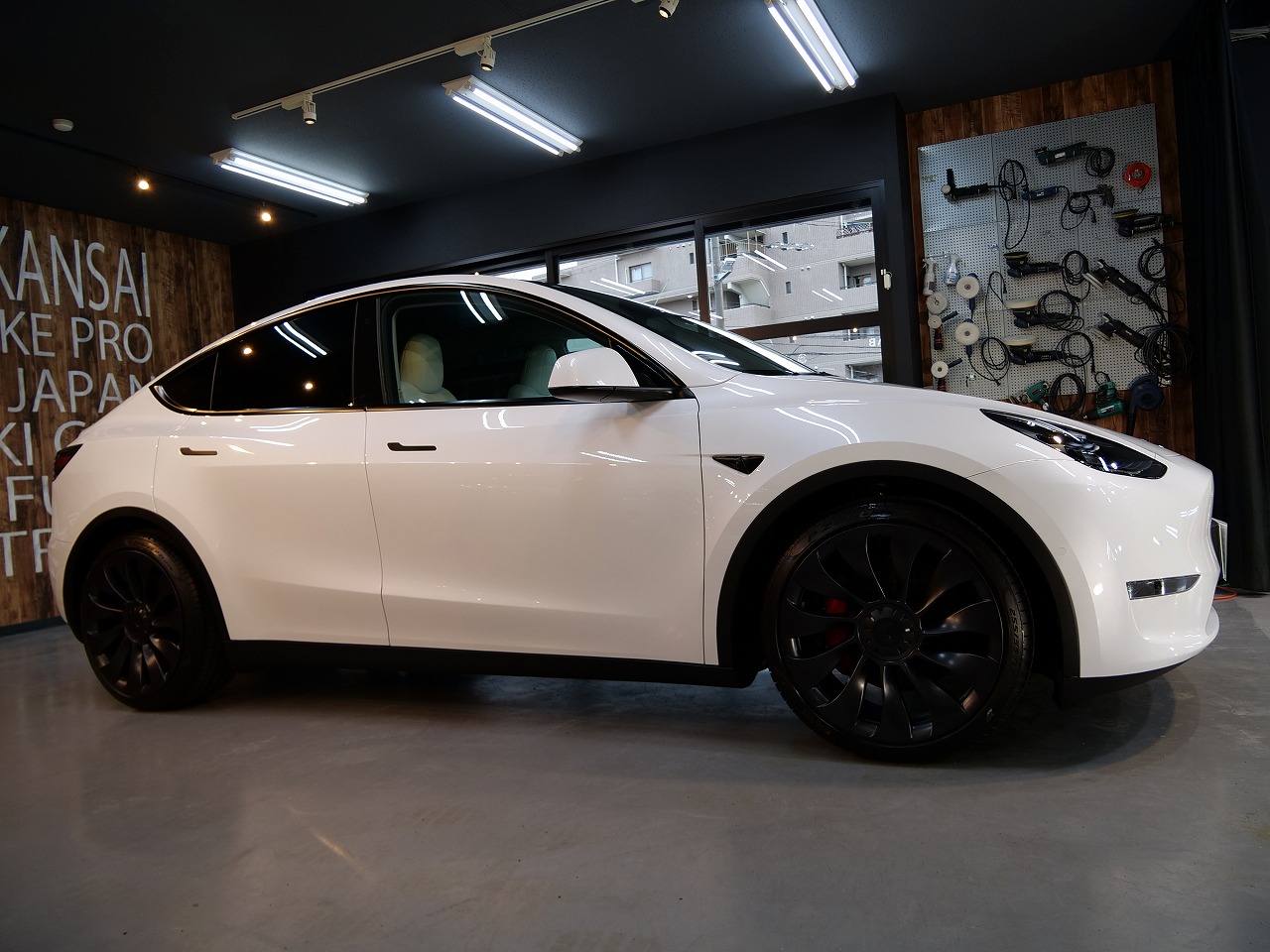 兵庫県西宮市より当店のリピーター様がテスラ モデルYをお持ち下さいました!ボディカラーはパール