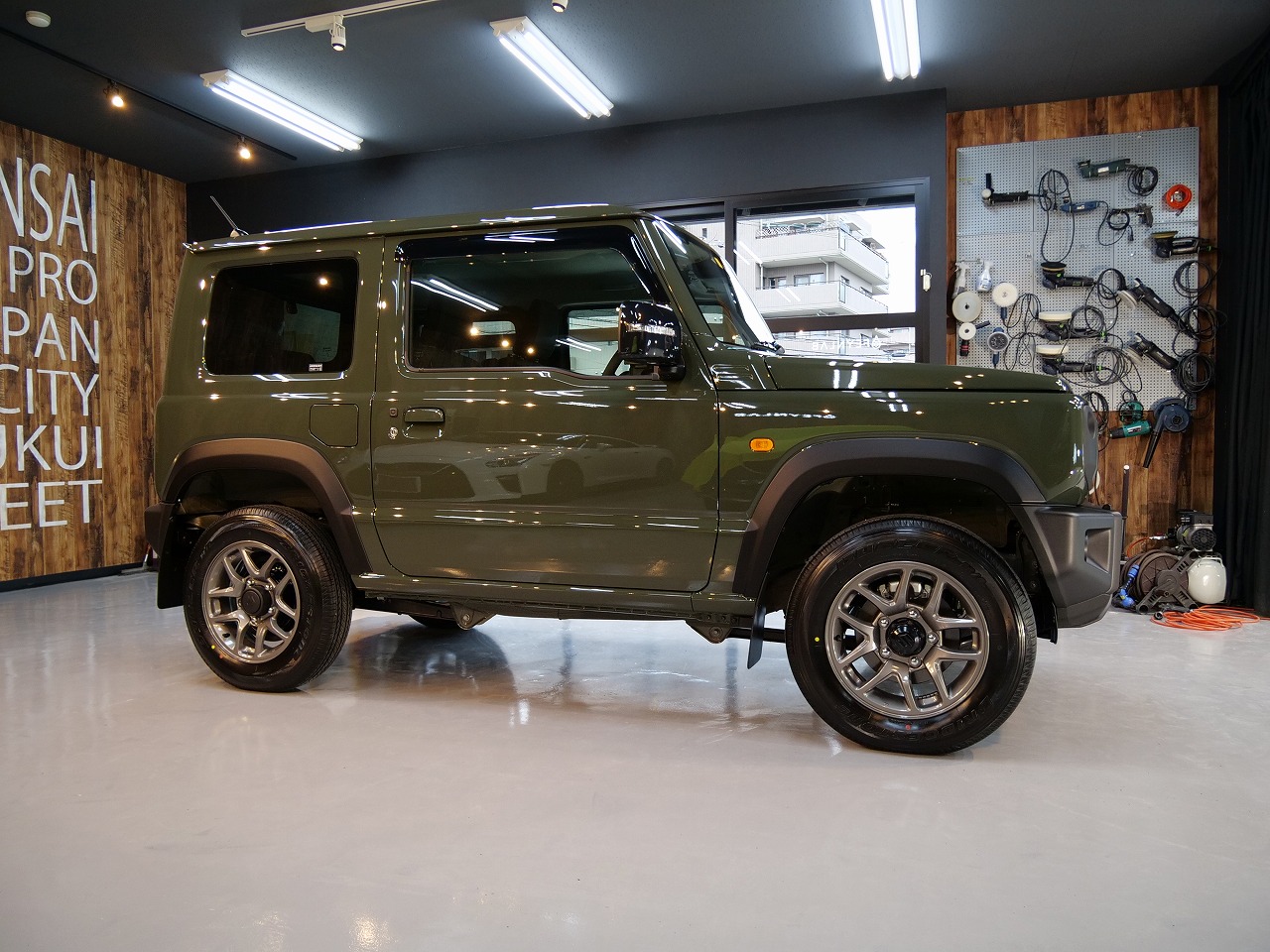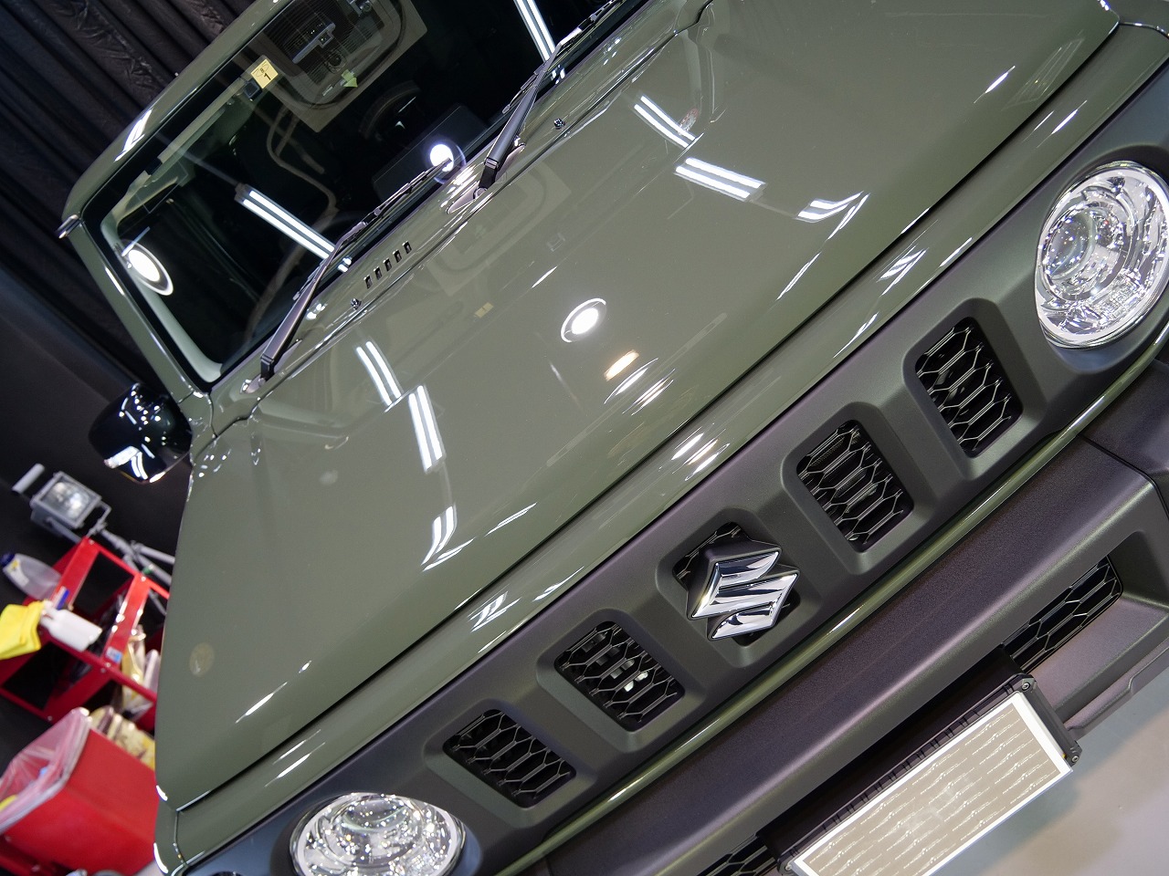 大阪府大東市よりスズキ ジムニーをお持ち下さいました!ボディカラーはジャングルグリーン!施工は