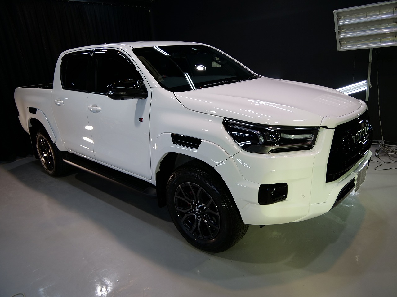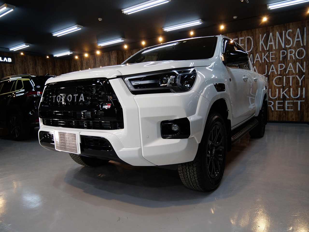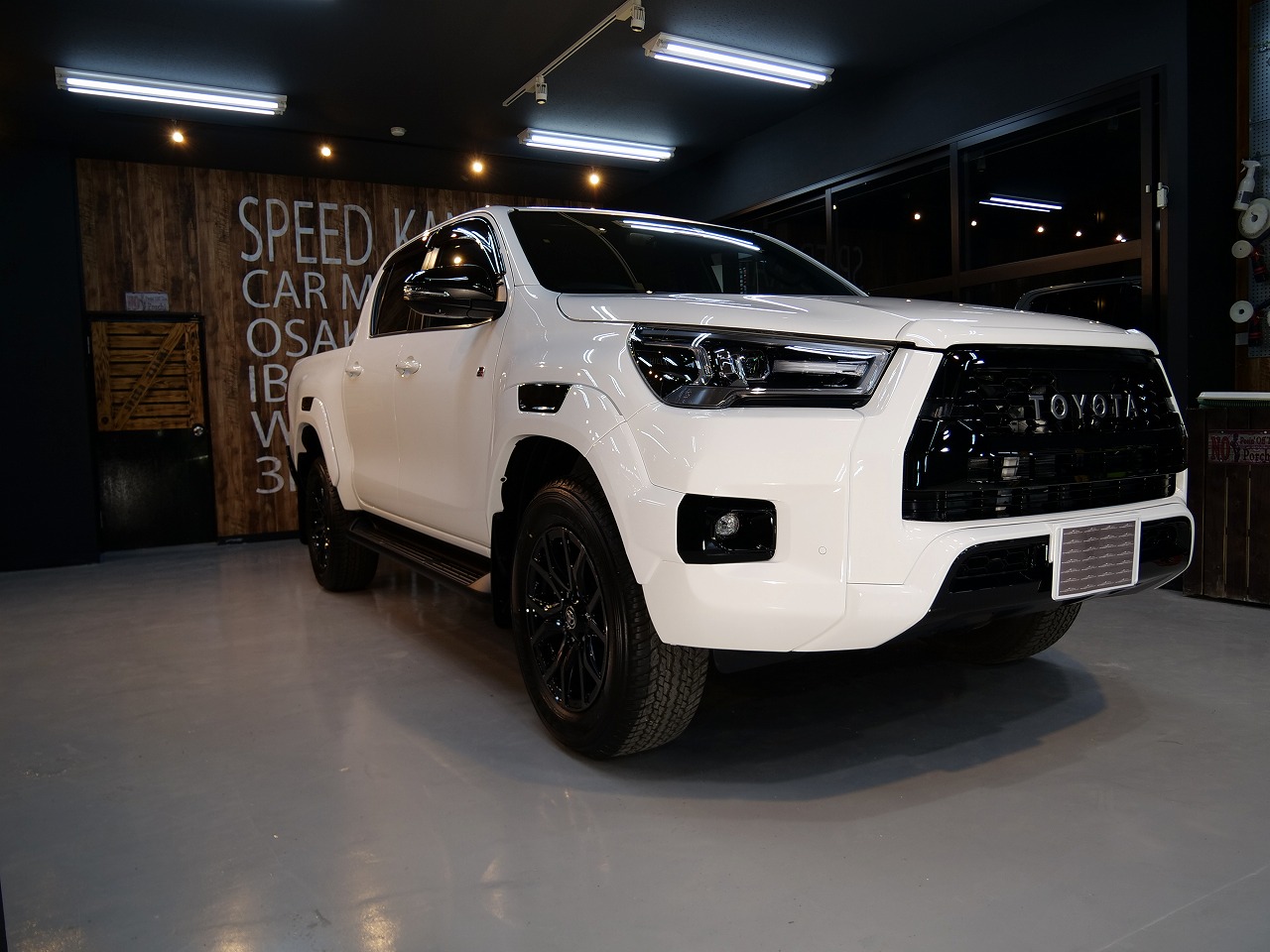 大阪市よりトヨタ ハイラックス GR-SPORTのご入庫です!ボディカラーはスーパーホワイトⅡ 施工は